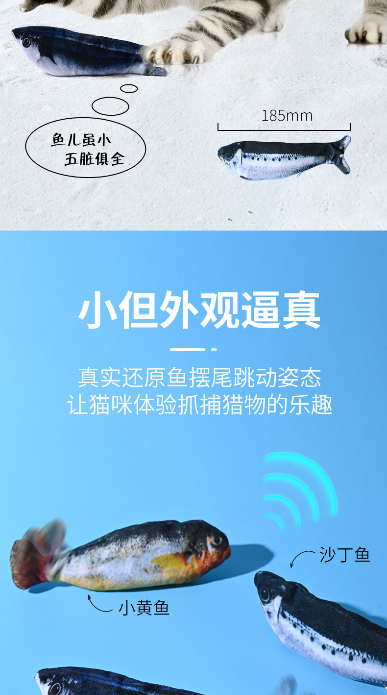 국경을 넘는 신제품, 초소형 물고기 지능형 전기 고양이 플러시 장난감, 자기 자극, 지루함 해소, 물림 방지 및 치아 마모 방지 고양이 유혹 도구