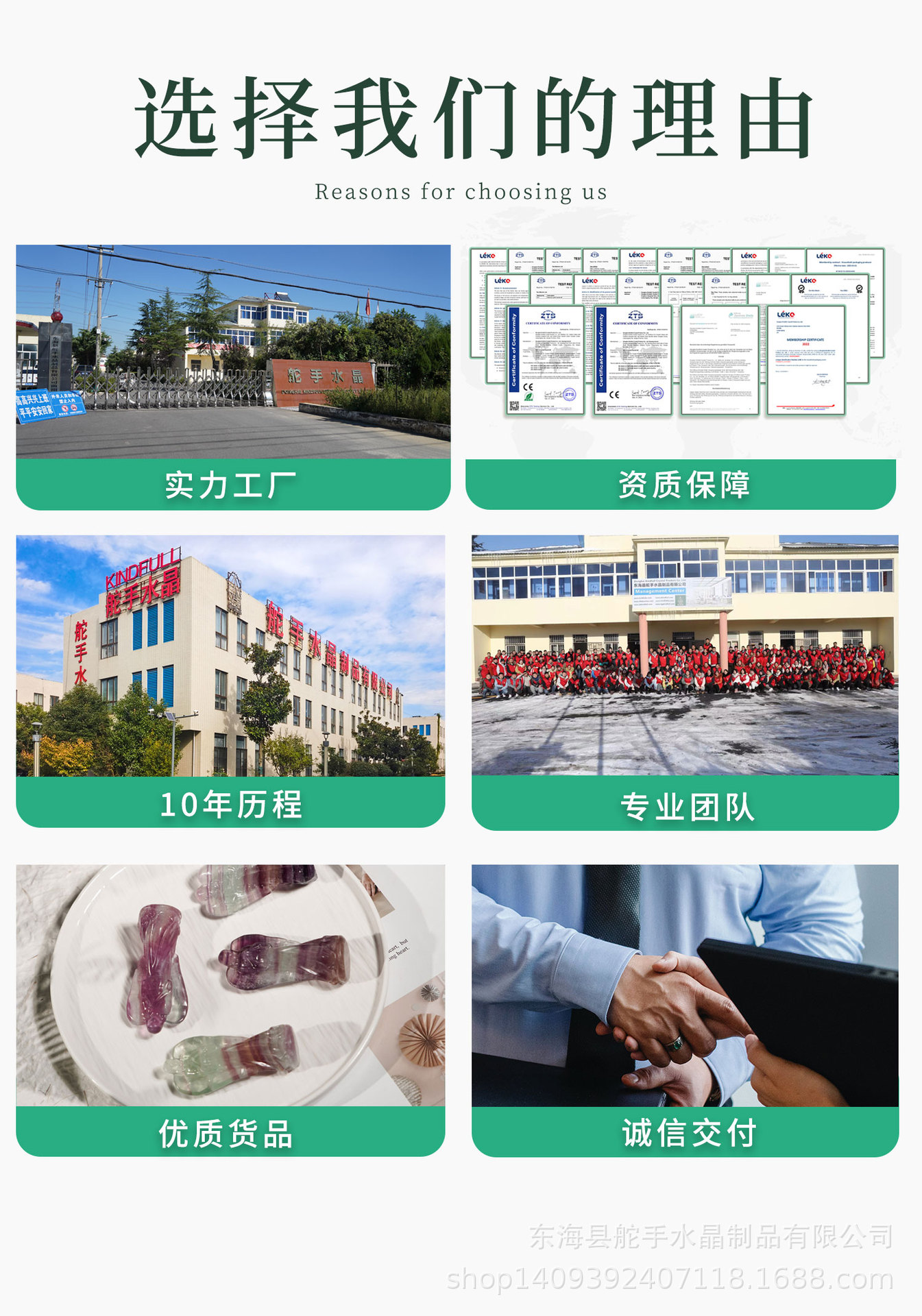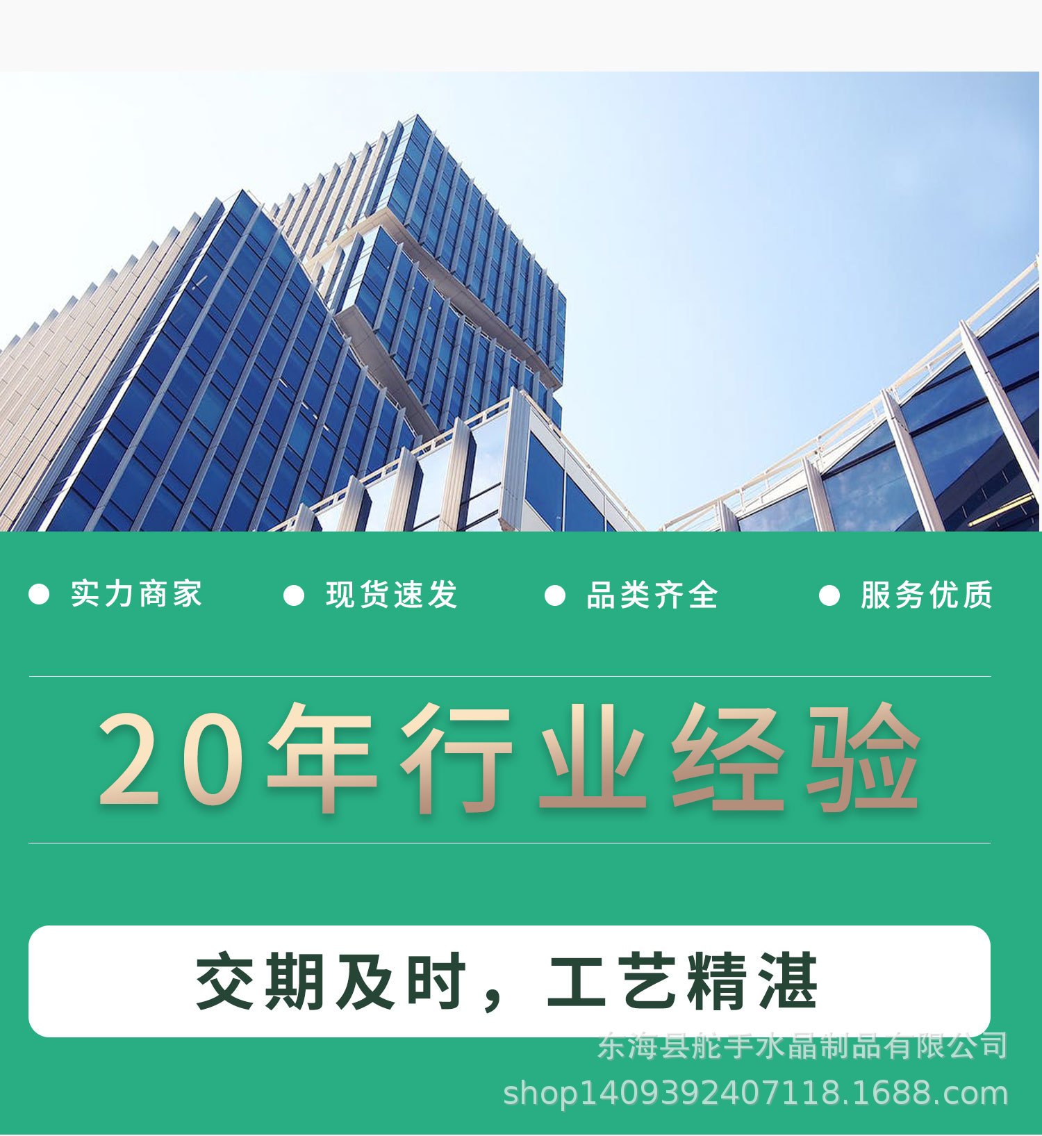 我们拥有专业优秀的外贸销售团队,拥有专业的水晶生产加工线,先进的生产设备和合理有序的生产工艺,在加工过程中,专业的质检人员严格控制加工质量。