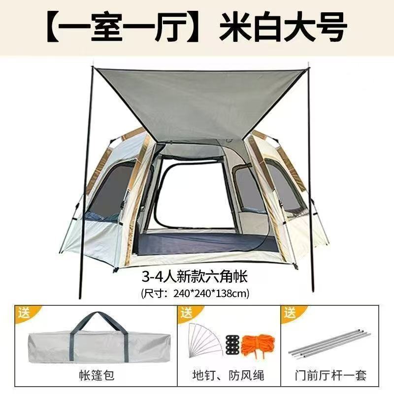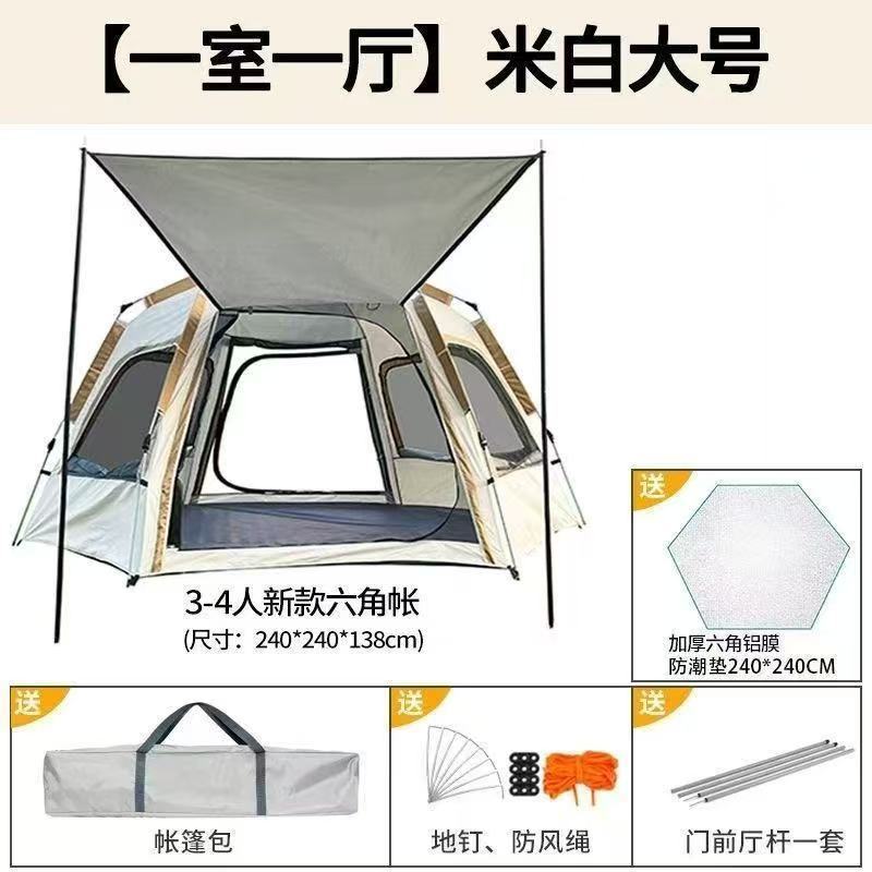 • 3~4인용 대형 고급 육각형 자동 텐트 오프화이트 + 방습 패드.