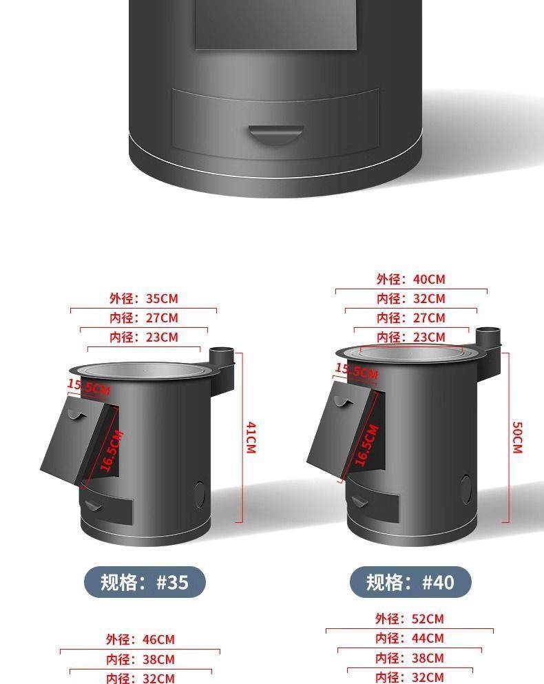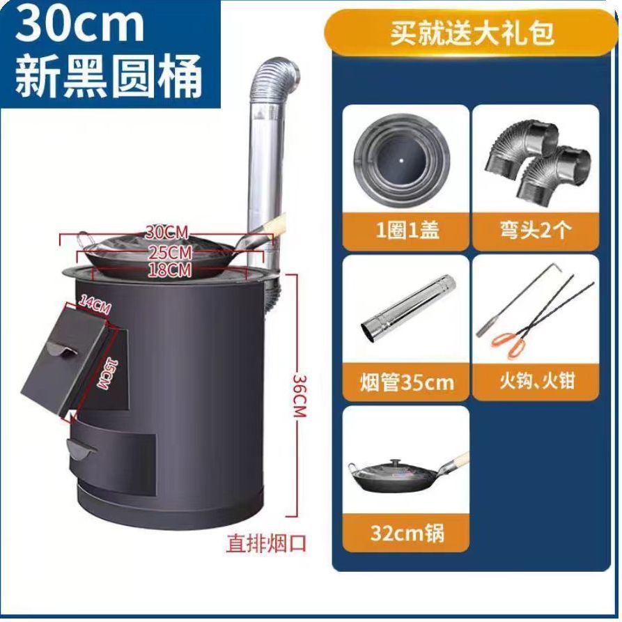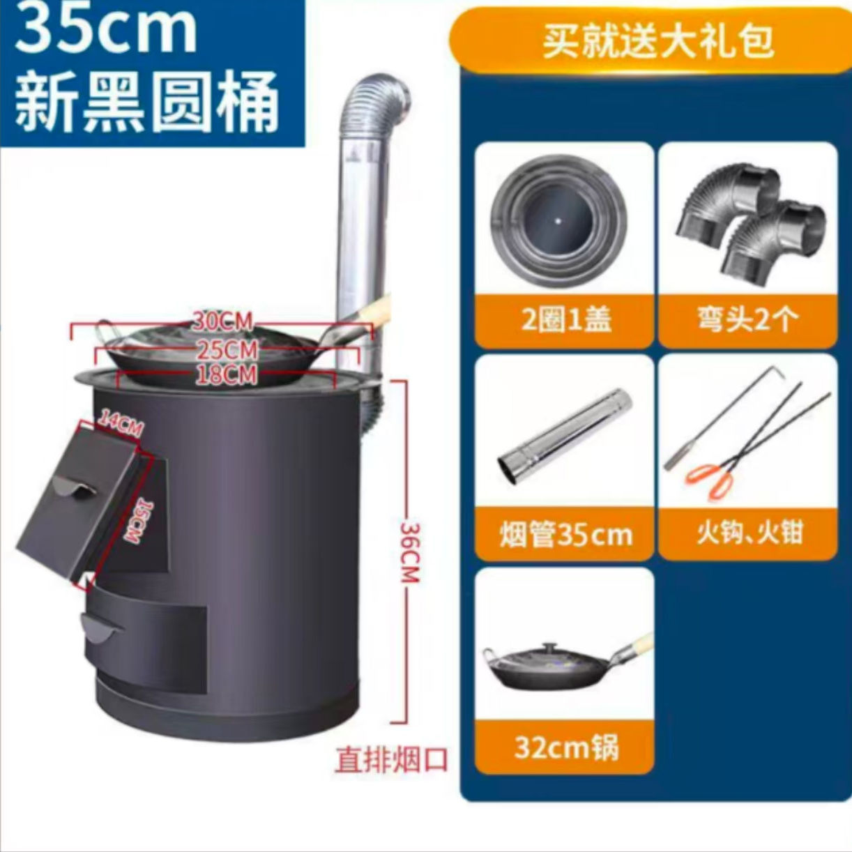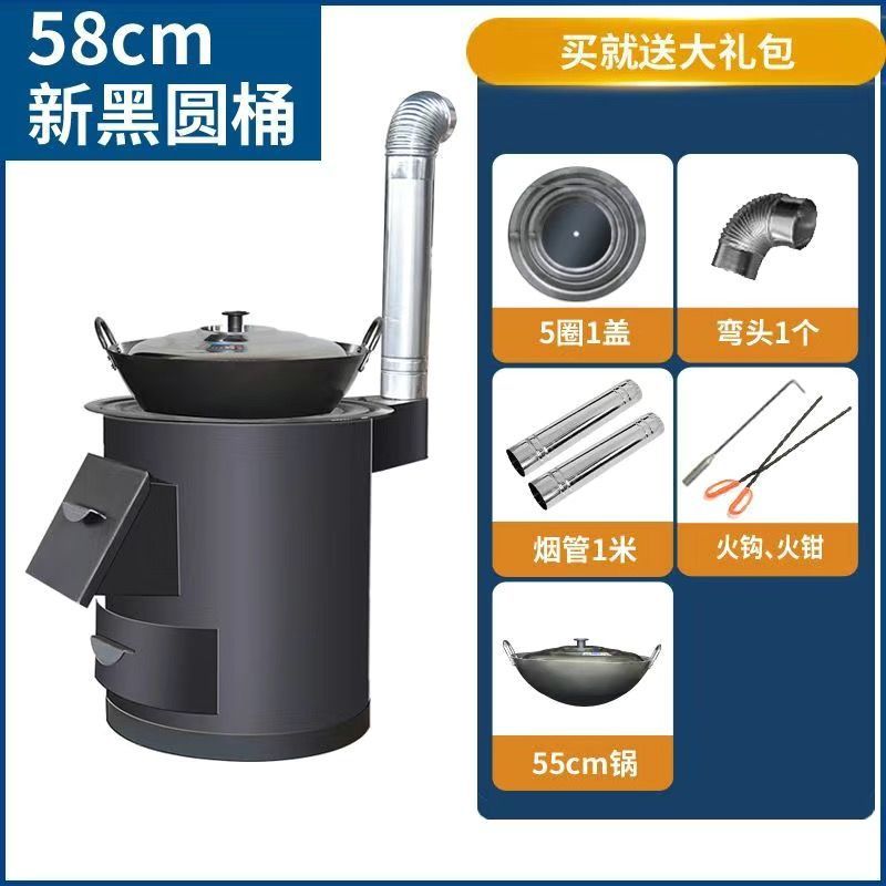 새로운 장작 난로, 가정용 장작 대형 철 냄비, 농촌 무연 난방 스토브, 에너지 절약형 휴대용 안뜰 장작 난로스토어 가기