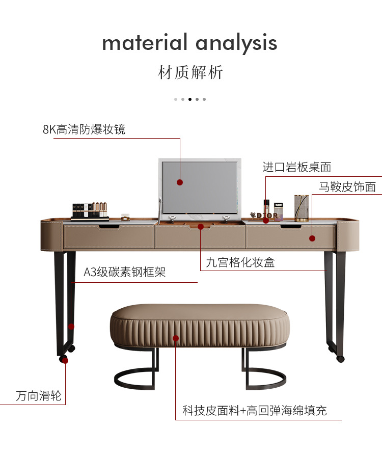 • 2.2m 메이크업 거울과 스툴이 포함된 침대용 컴퓨터 책상