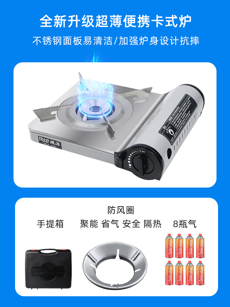 • 업그레이드 및 강화된 카세트 스토브 + 여행가방 + 방풍링 + 가스 8병