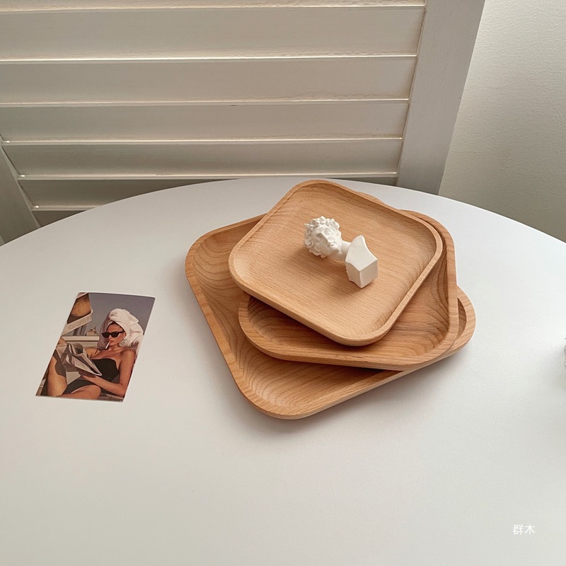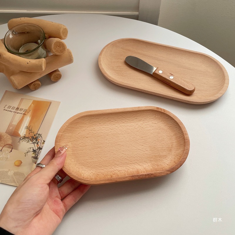 인스 스타일 나무 트레이 둥근 나무 트레이 일본식 타원형 너도밤나무 작은 나무 접시 우유 스낵 트레이 포즈 트레이