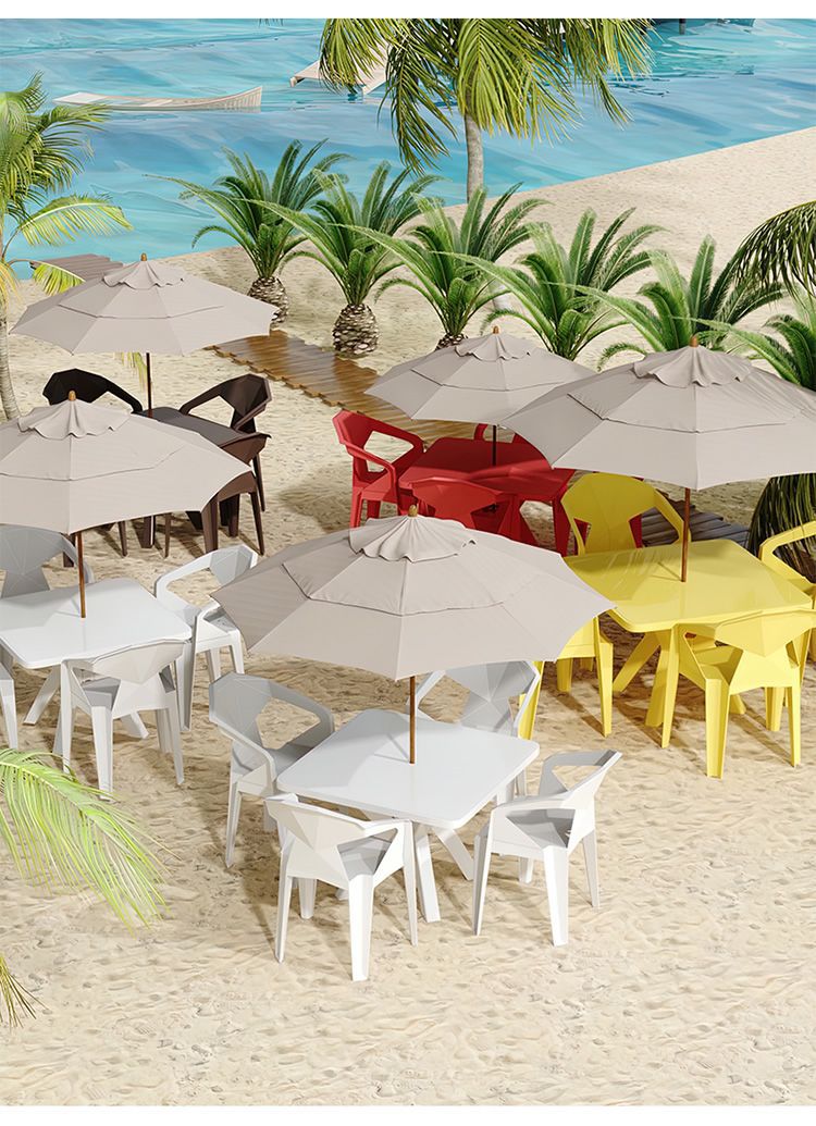 두꺼운 플라스틱 테이블과 의자 조합, 안락의자, 등받이 의자, 식탁 세트, 야외 테이블, 발코니, 해변 안뜰