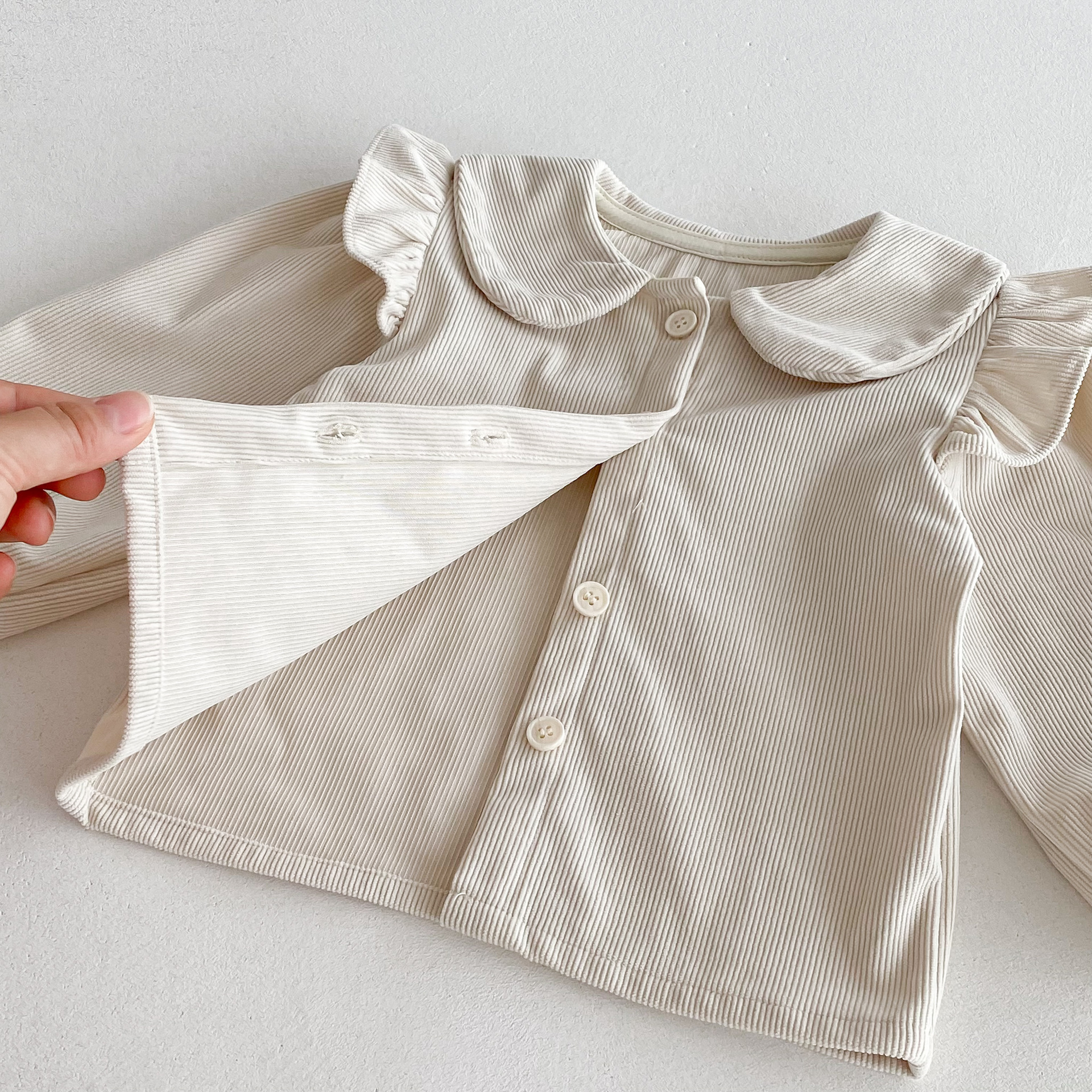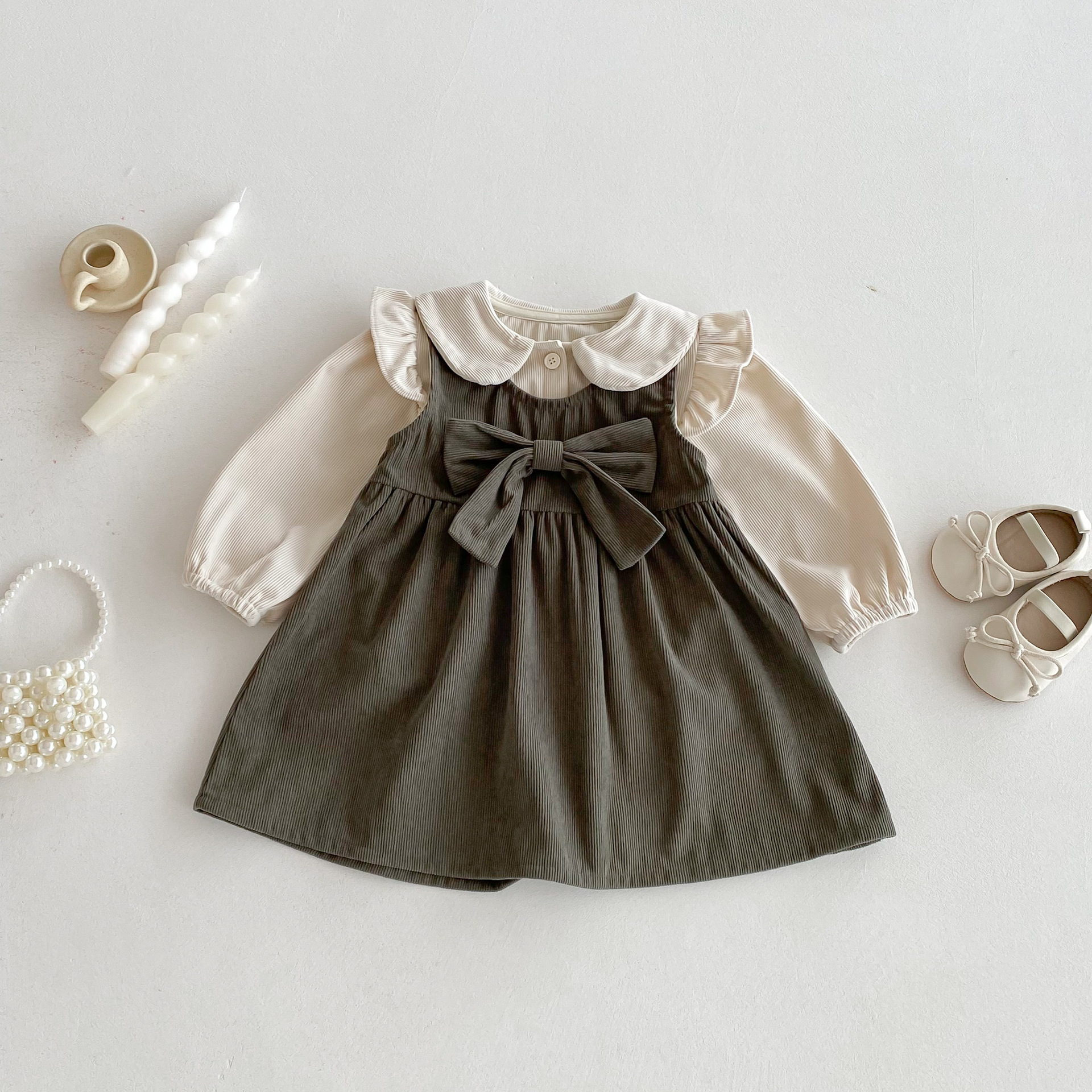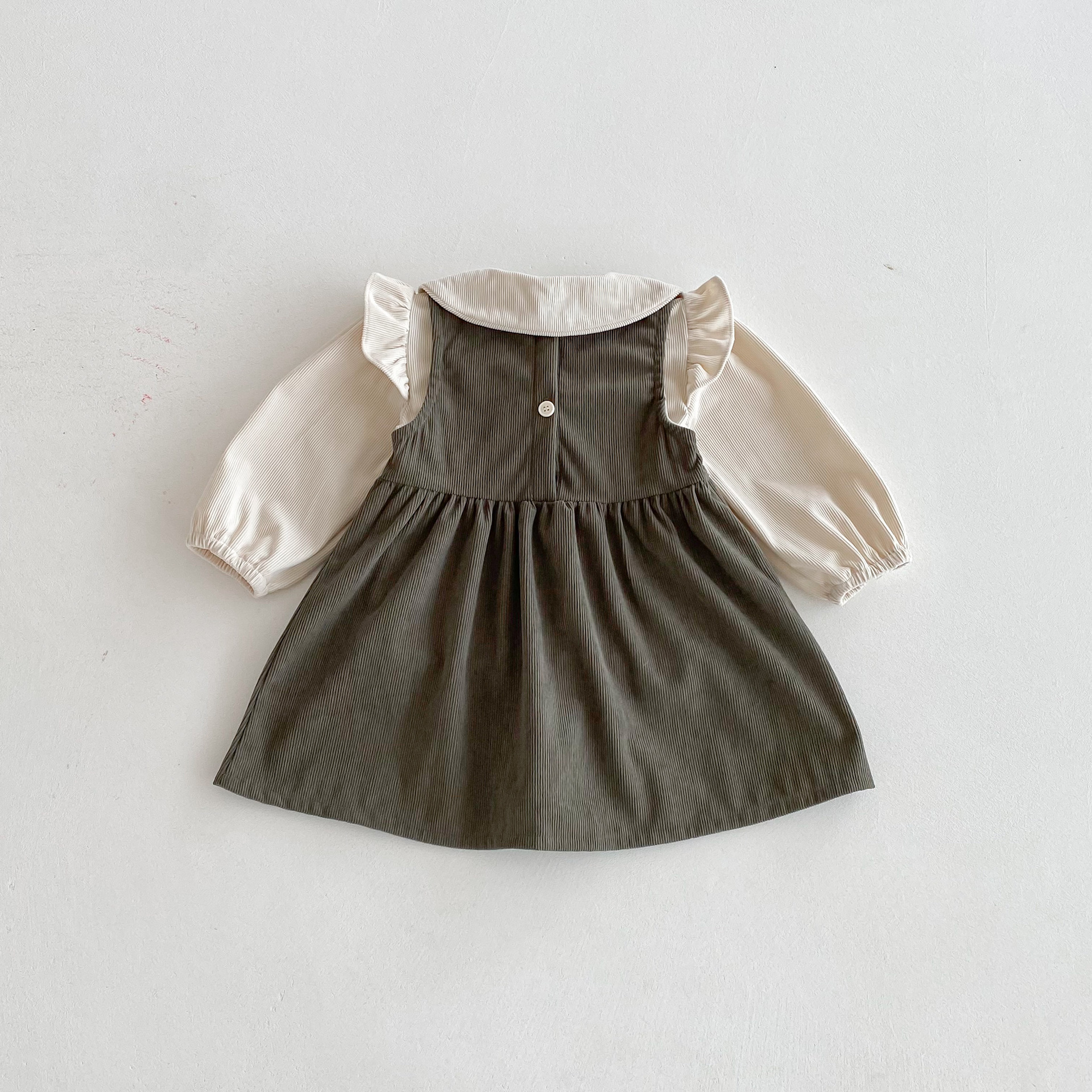 여자 한국 스타일 가을 드레스 인형 칼라 카디건 긴 소매 탑 아기 소녀 봄, 가을 코듀로이 조끼 드레스