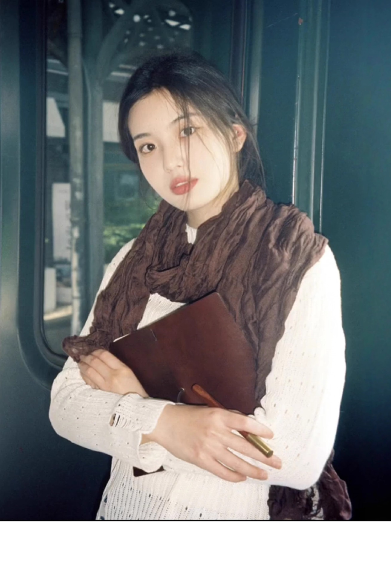 봄 여름 여성용 레트로 면 린넨 스카프, 얇은 예술적 브라운 빈티지 주름 자외선 차단제 긴 실크 스카프, 목 주위 분위기스토어 가기