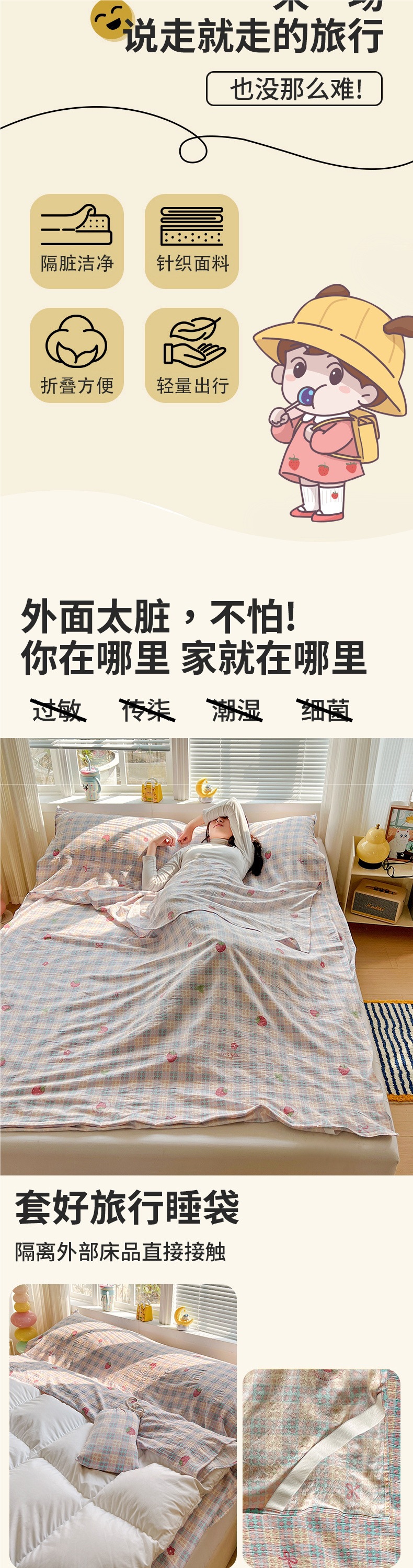 구름같은 부드럽고 찰진 이중실 호텔 방오 침낭 휴대용 4종 세트 여행용 침대 시트 이불 커버 3종 세트 여행용스토어 가기