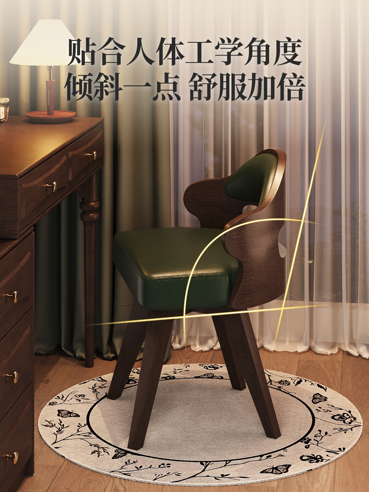 단단한 나무 가정용 회전 컴퓨터 의자 학생 책상 의자 간단한 작은 컴팩트 쓰기 의자 등받이 메이크업 의자 의자스토어 가기