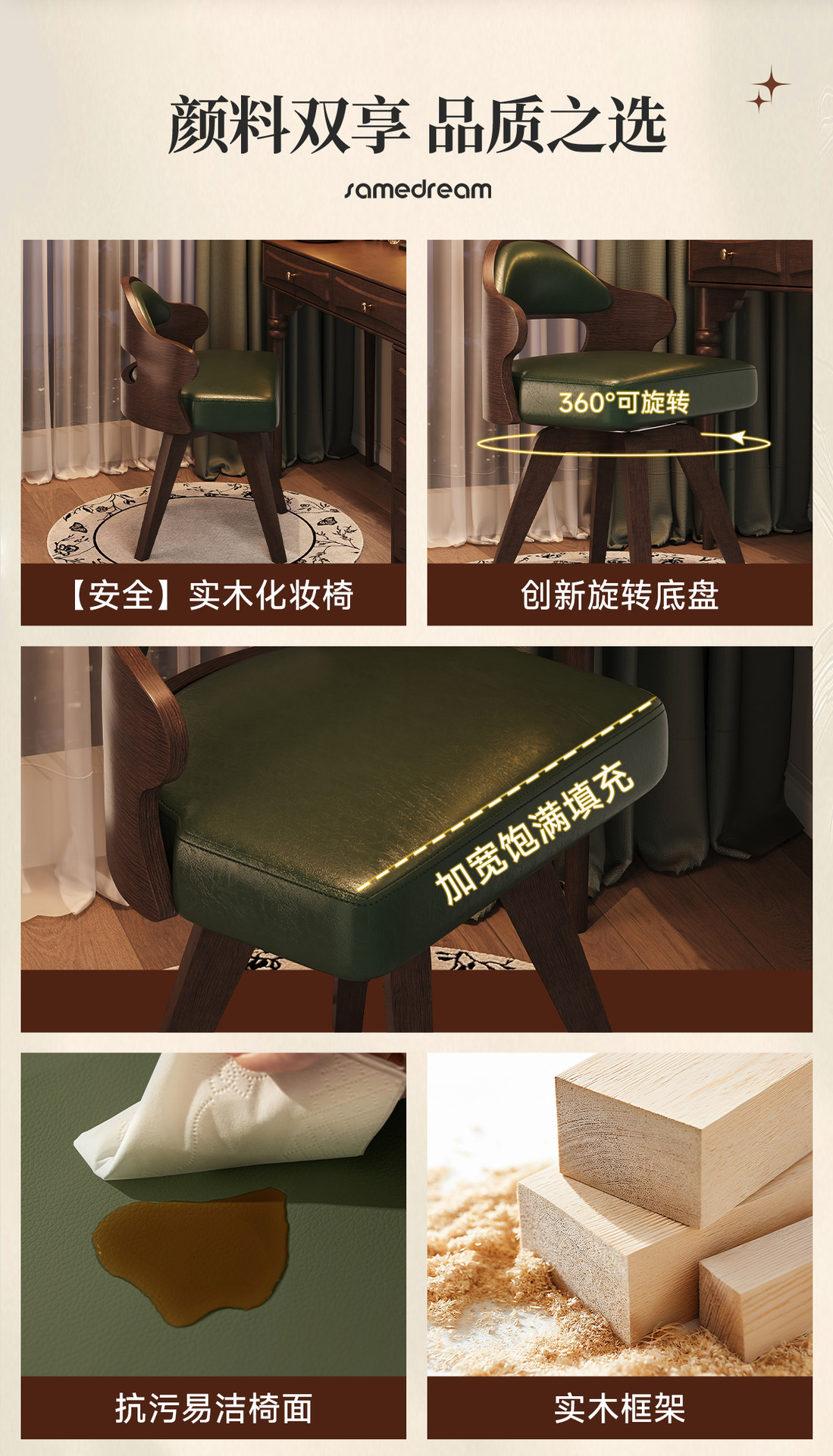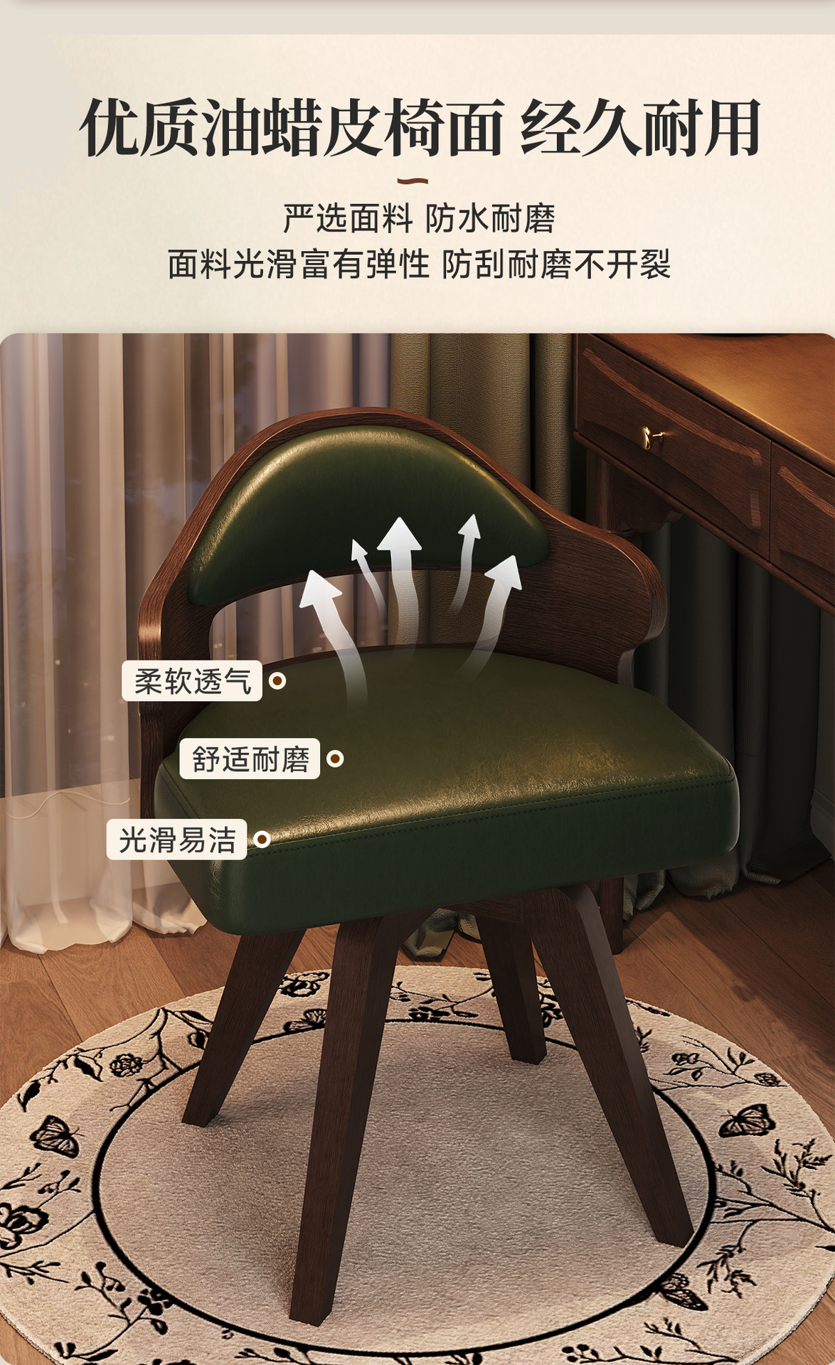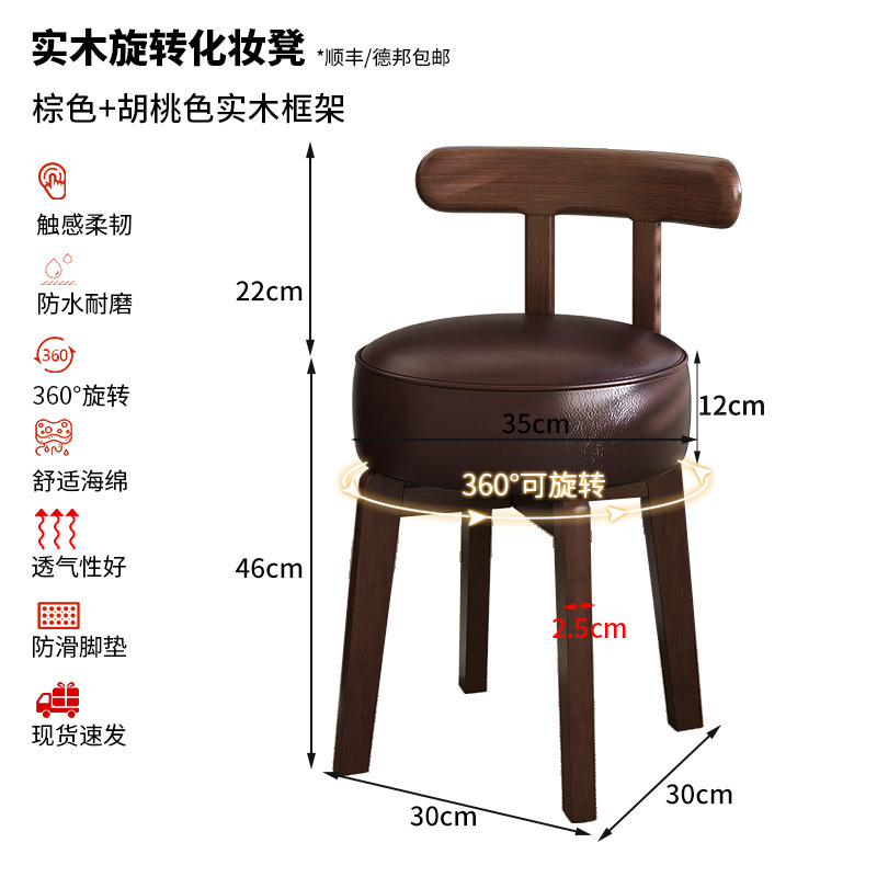 단단한 나무 가정용 회전 컴퓨터 의자 학생 책상 의자 간단한 작은 컴팩트 쓰기 의자 등받이 메이크업 의자 의자
