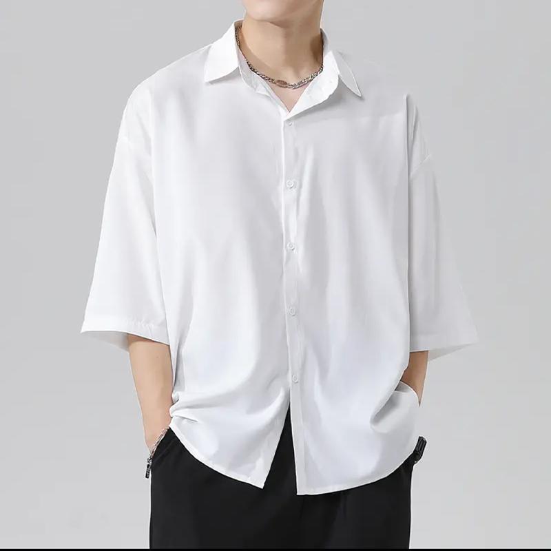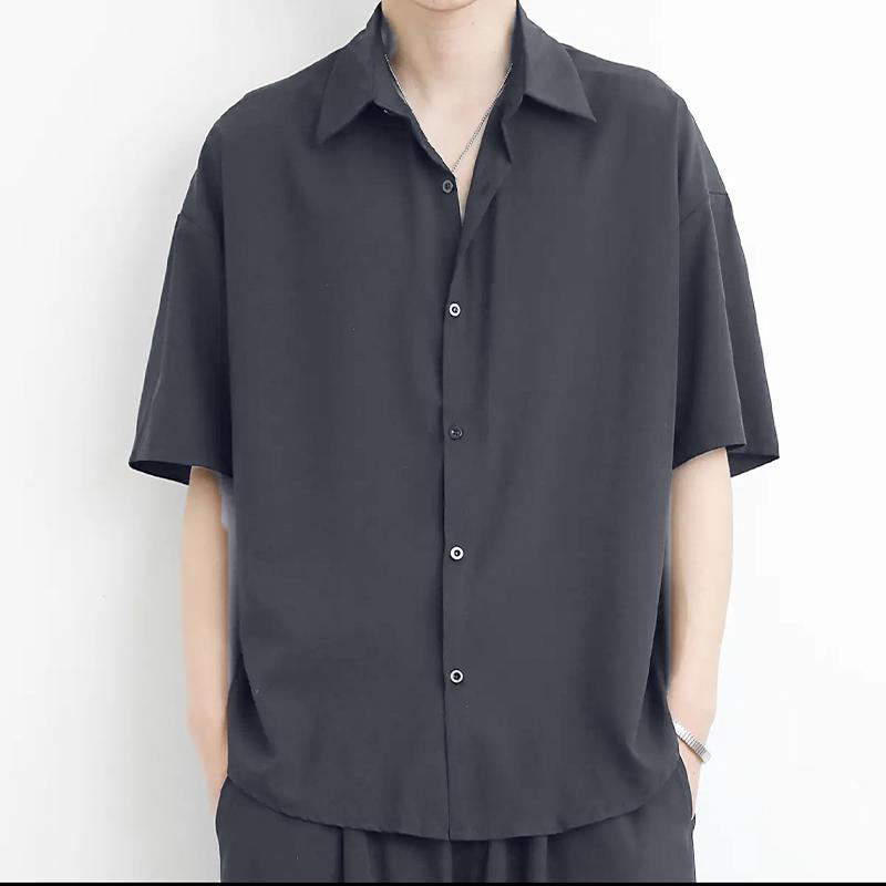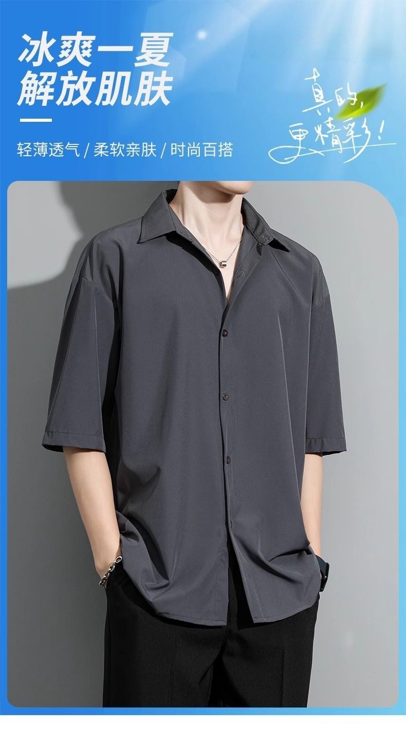 프라이빗 아이스 실크 셔츠 남성용 여름 얇은 통기성 블랙 화이트 그레이 드레이프 스타일 트렌디 브랜드 멋스러운 캐주얼 남성 셔츠스토어 가기