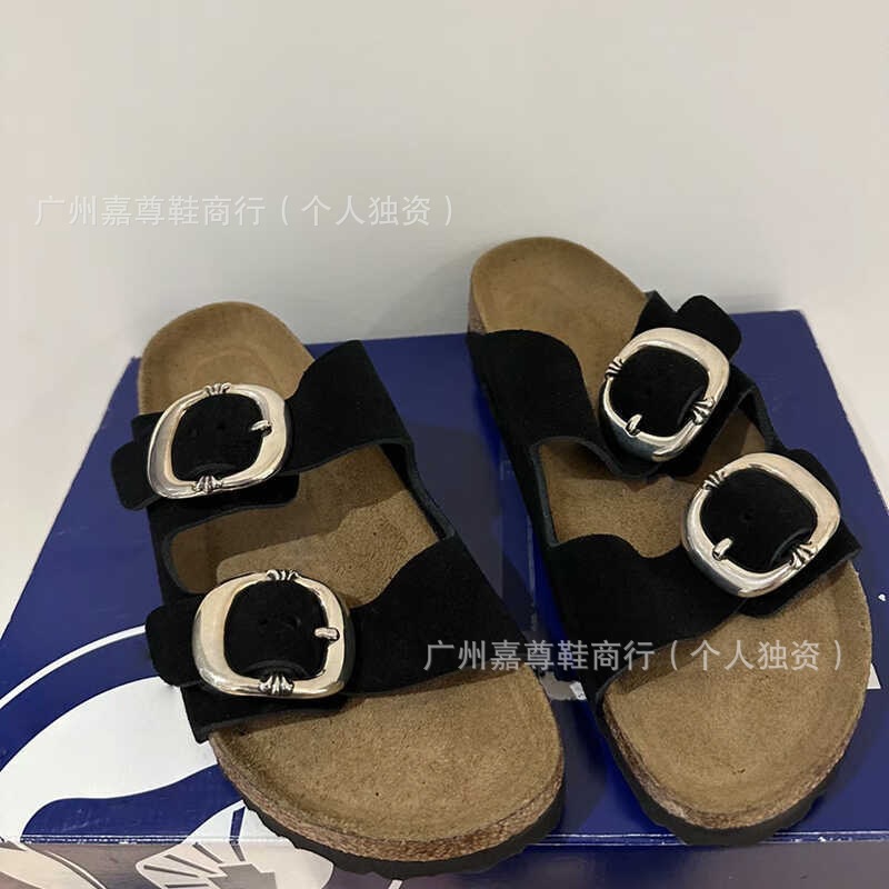 여름 아우터용 천연가죽 크로크로스 보켄 2호 벨크로 실버 버클 코르크 밑창 슬리퍼
