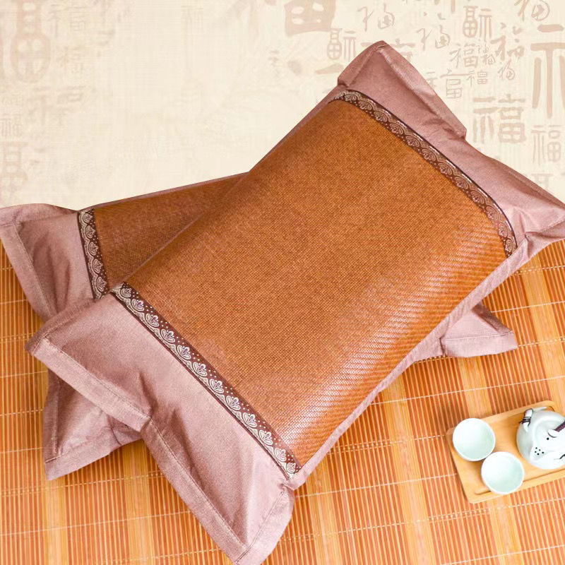 성인용 여름 대나무 및 등나무 베개, 얼음 실크 베개 커버, 어린이용 대나무 베개, 대나무 및 등나무 베개 커버, 한 쌍