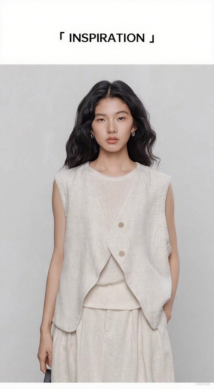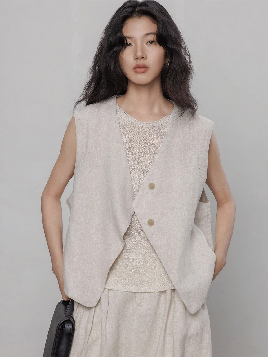 [고급상품] 100% 린넨 9수 원사로 만든 여성용 올드머니 스타일 조끼, 캐주얼하고 여유로운 민소매 재킷