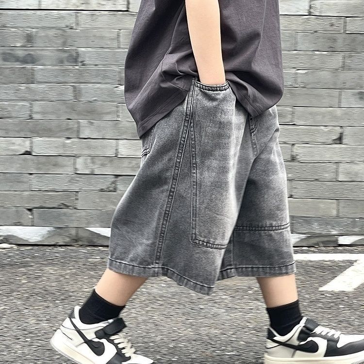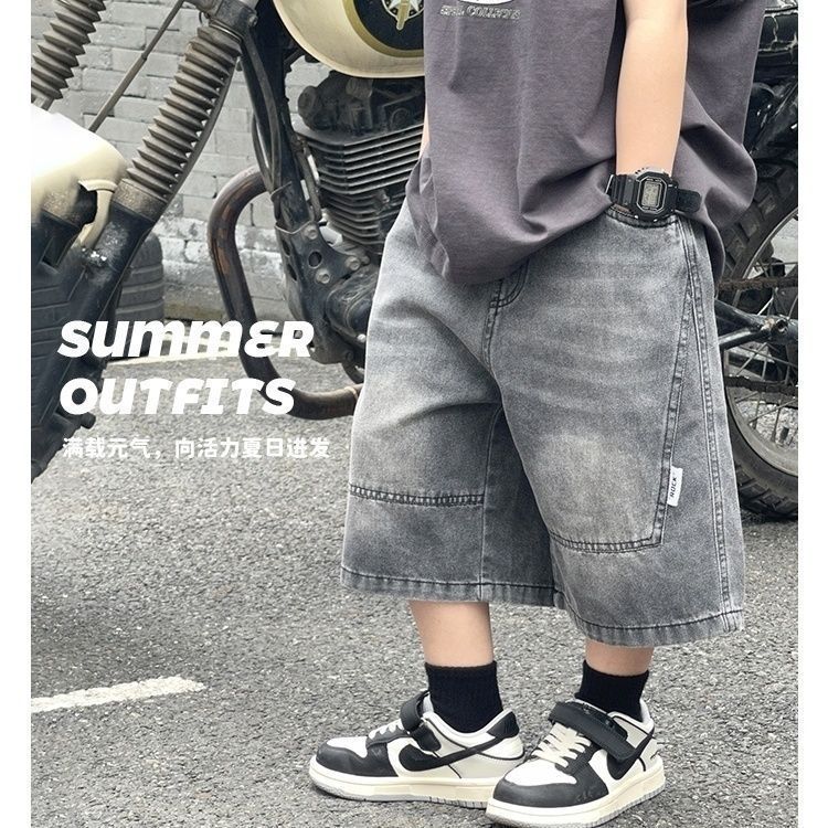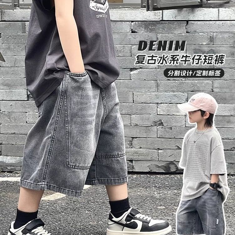 아동복 소년 데님 반바지 2025 여름 새 스타일 아동용 워시 청바지 중대형 아동용 얇은 5부 바지 유행스토어 가기