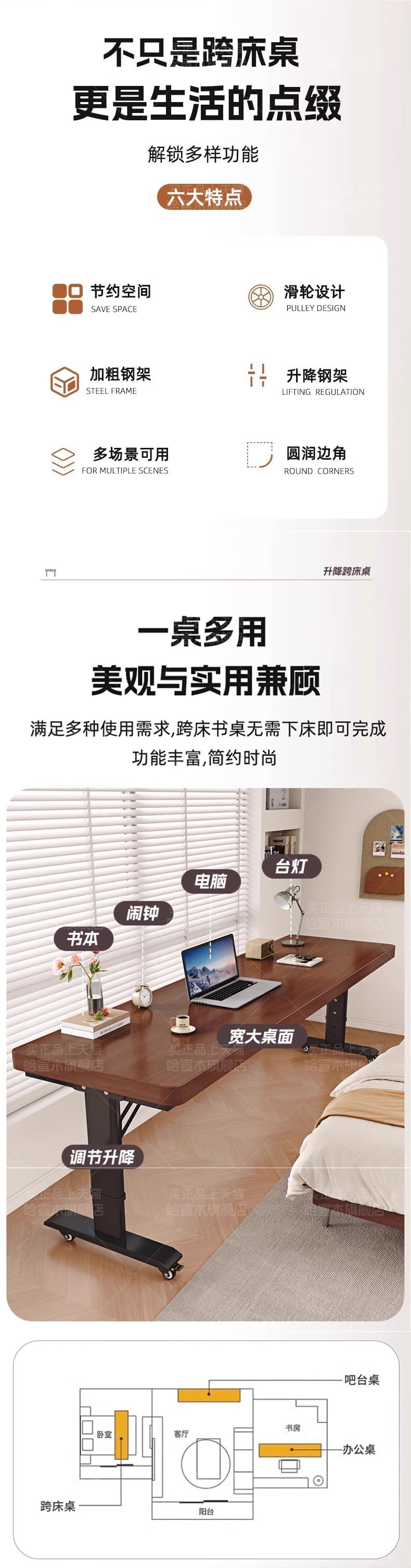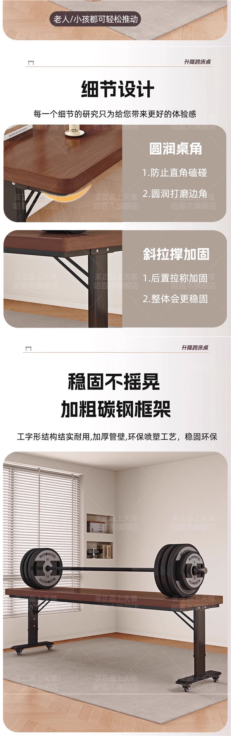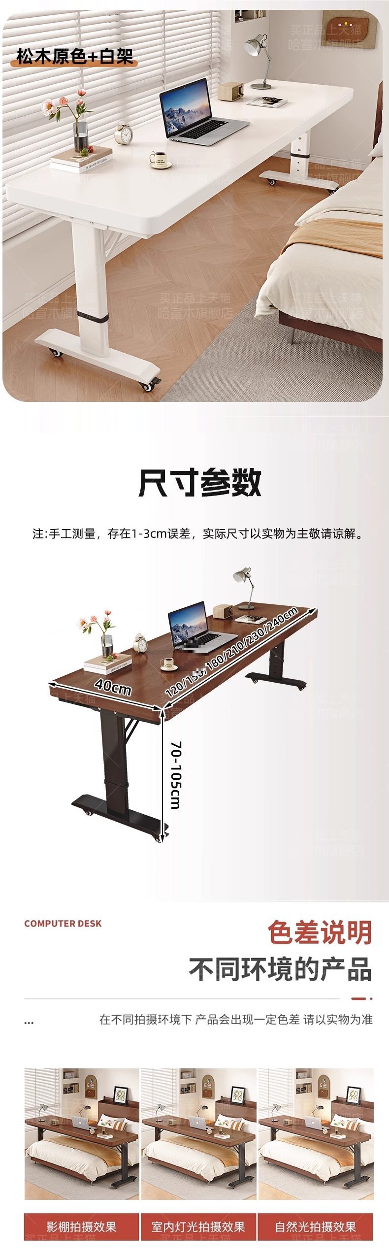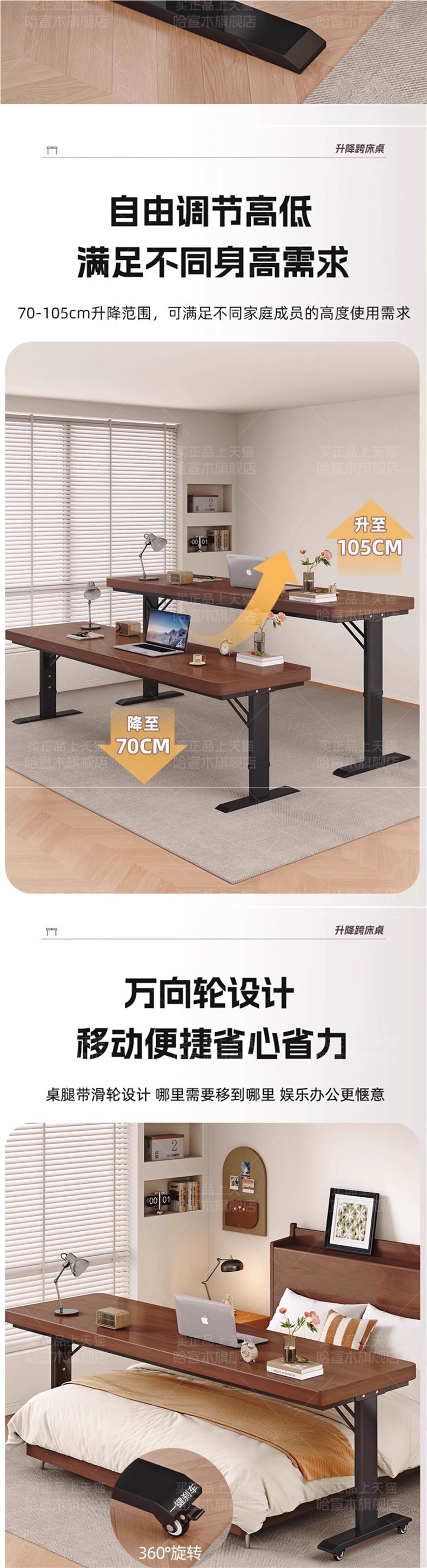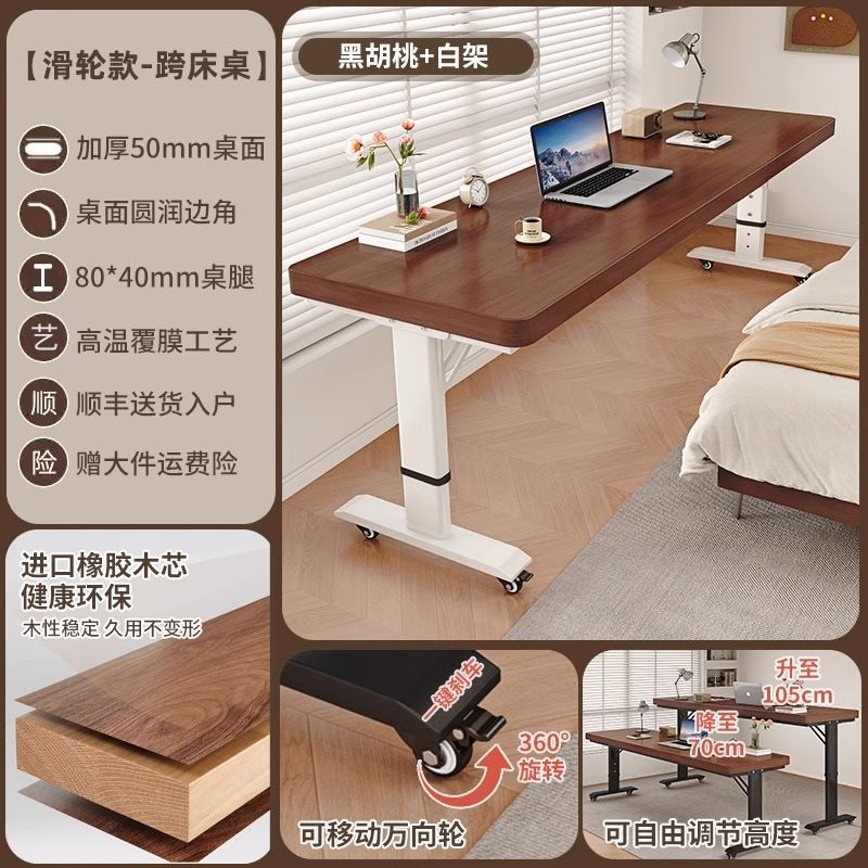 • 롤러 스케이트 모델 [업그레이드된 50MM 원목 데스크탑] 블랙 월넛 + 화이트 프레임 [프리 리프팅]