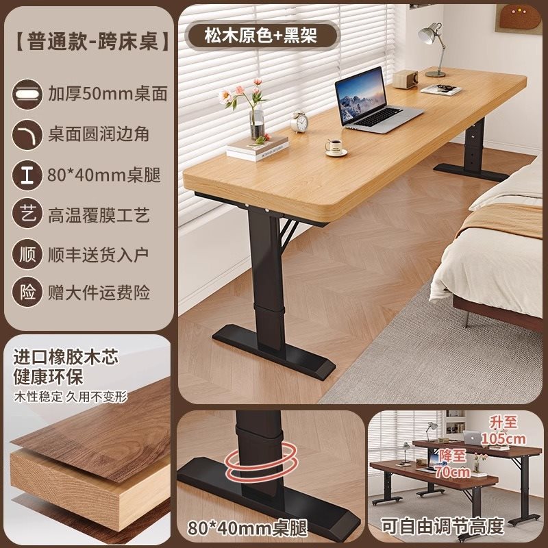 • [업그레이드된 50MM 원목 데스크탑] 소나무 오리지널 컬러 + 블랙 프레임 [프리 리프팅]