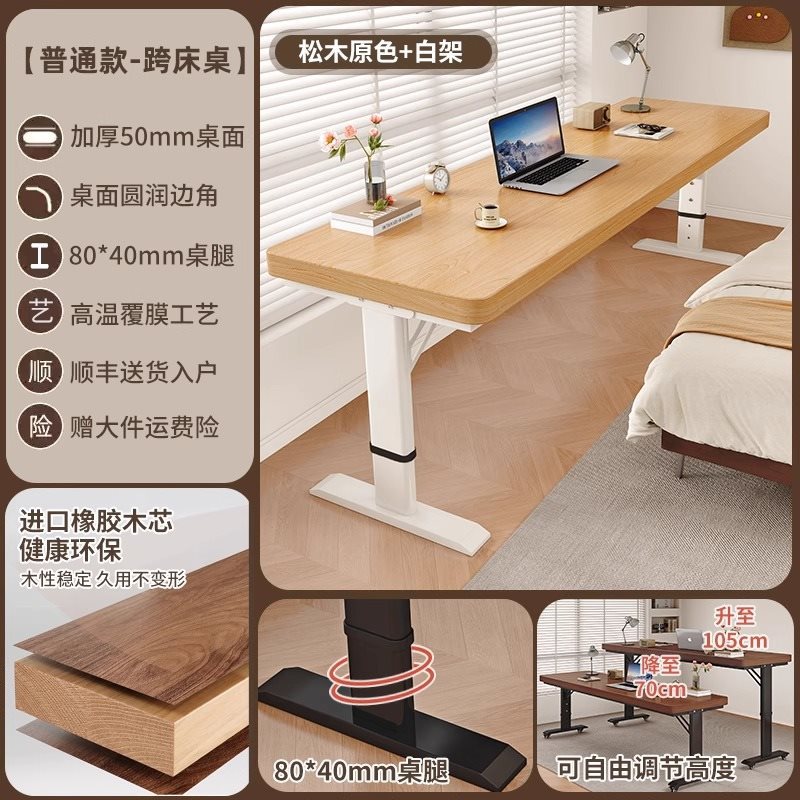 • [업그레이드된 50MM 원목 데스크탑] 소나무 오리지널 컬러 + 화이트 프레임 [프리 리프팅]