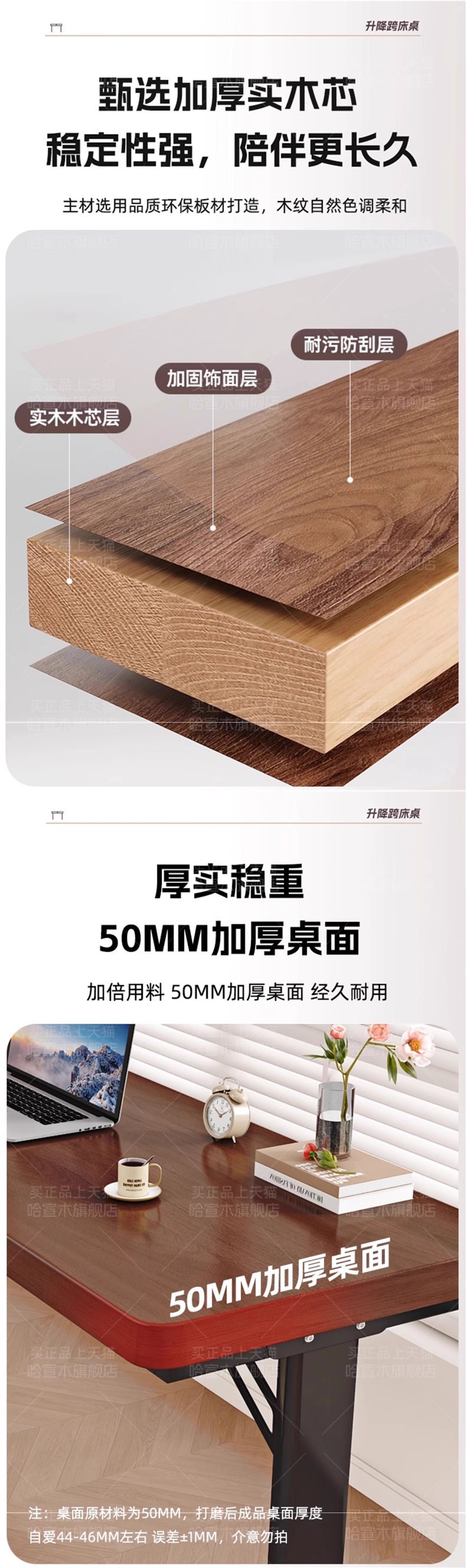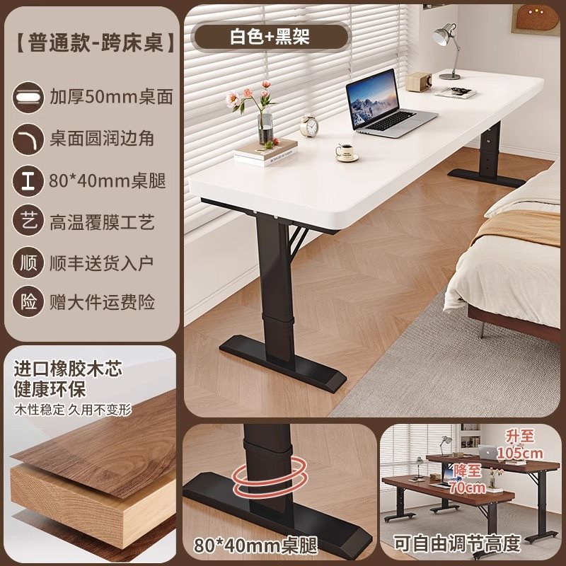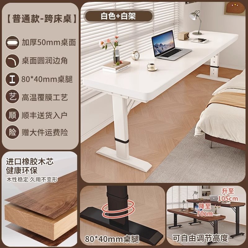 • [업그레이드된 50MM 원목 데스크탑] 화이트 + 화이트 프레임 [프리 리프팅]