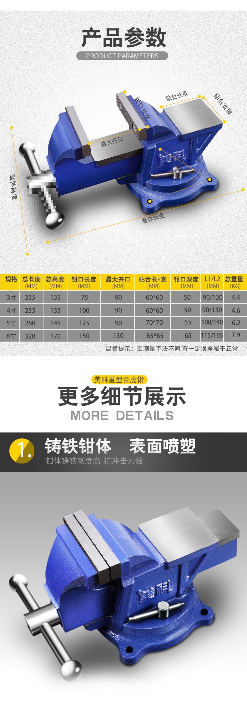 공장 직접 판매 산업용 등급 벤치 바이스 다기능 헤비 듀티 가정용 인치 범용 바이스 플랫 벤치 바이스 클램프