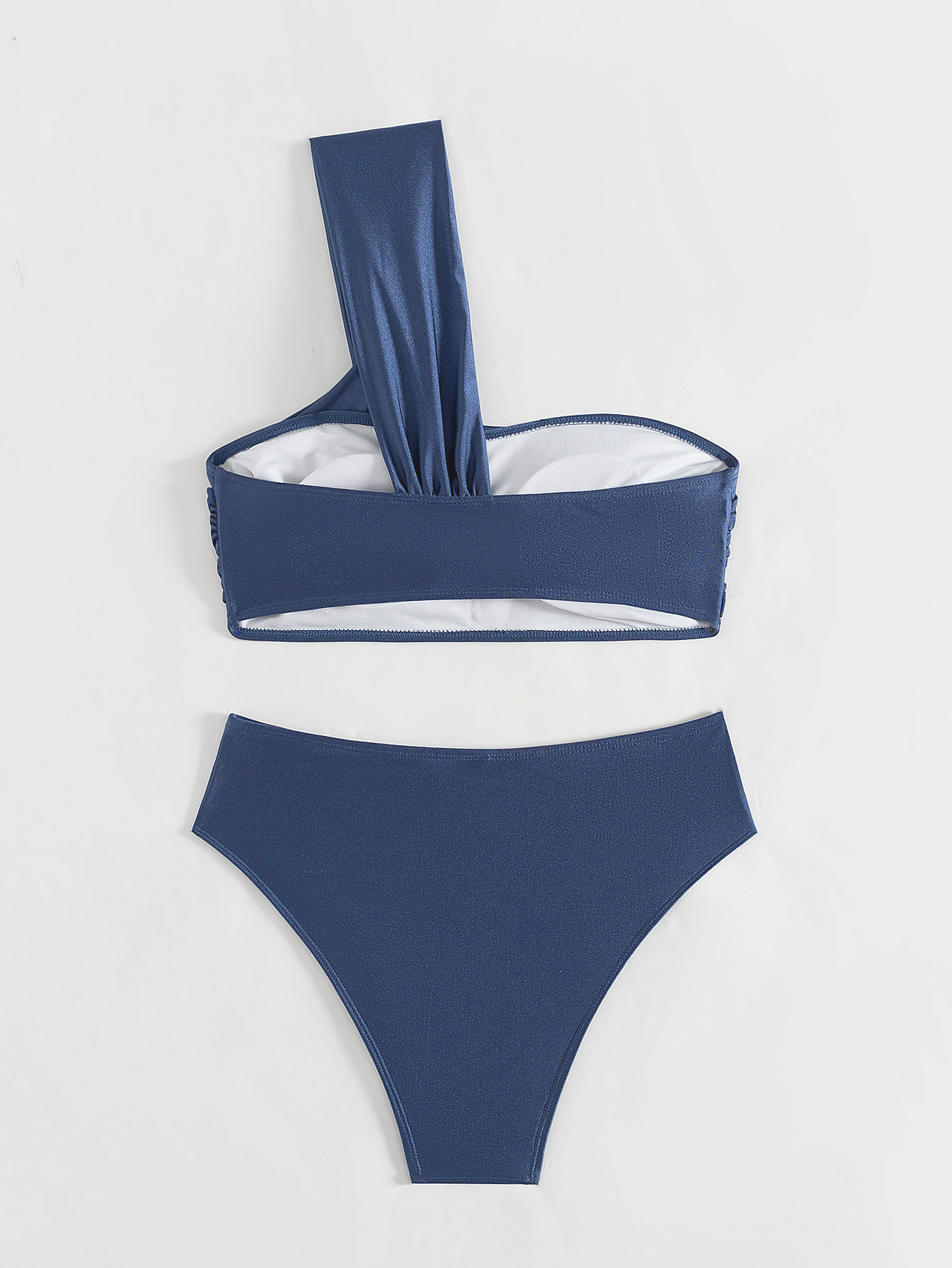 유럽과 미국의 원 숄더 주름 비키니 섹시한 하이 웨이스트 배 커버 휴가 스플릿 수영복 여성 크로스 보더 인기 수영복