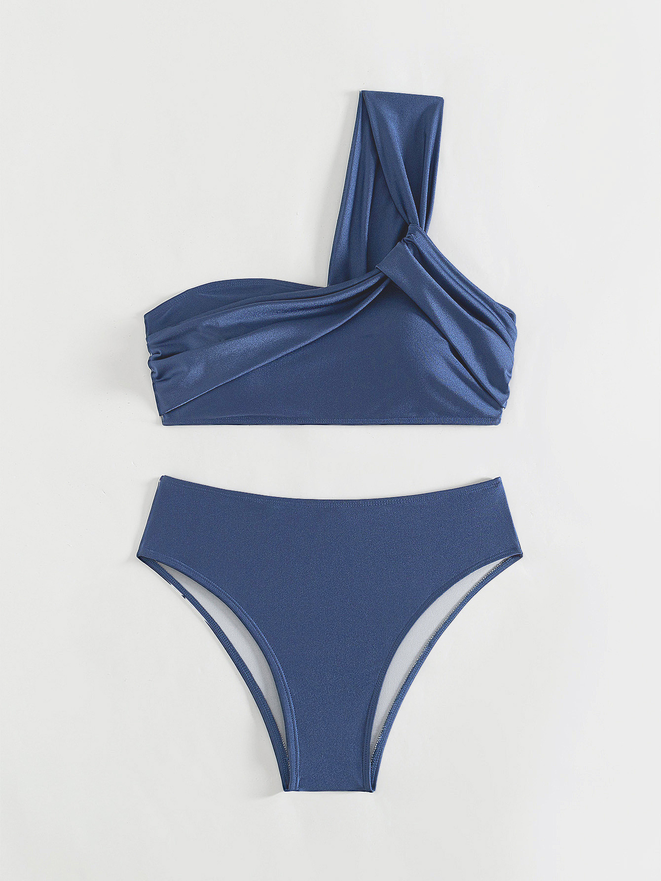 유럽과 미국의 원 숄더 주름 비키니 섹시한 하이 웨이스트 배 커버 휴가 스플릿 수영복 여성 크로스 보더 인기 수영복스토어 가기