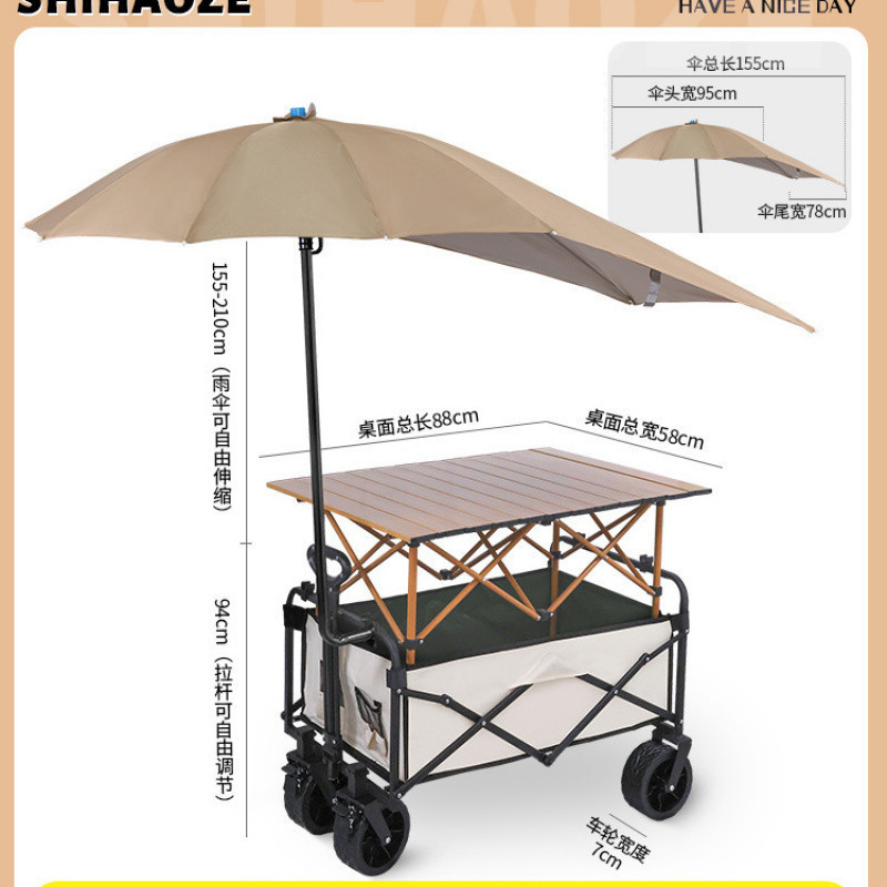 oBe 휴대용 스톨 트롤리 캠프 트레일러 야외 접이식 우산 캠핑 트롤리 방수 및 자외선 차단 피크닉스토어 가기