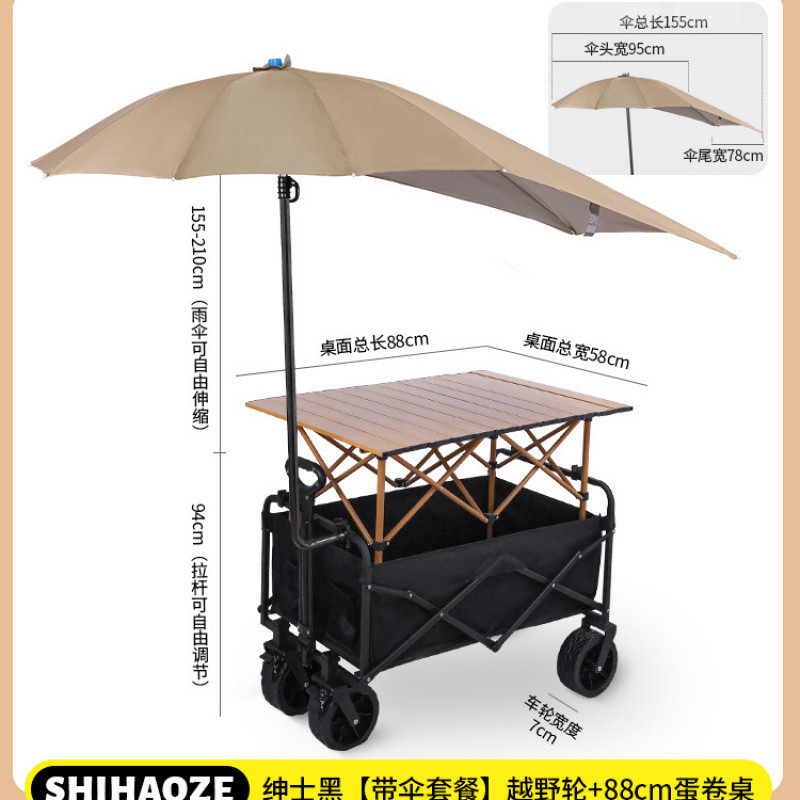 • 가족을 부양하기 위한 노점 시리즈 [슈퍼탱크바퀴 + 테이블 90개 + 우산] 블랙