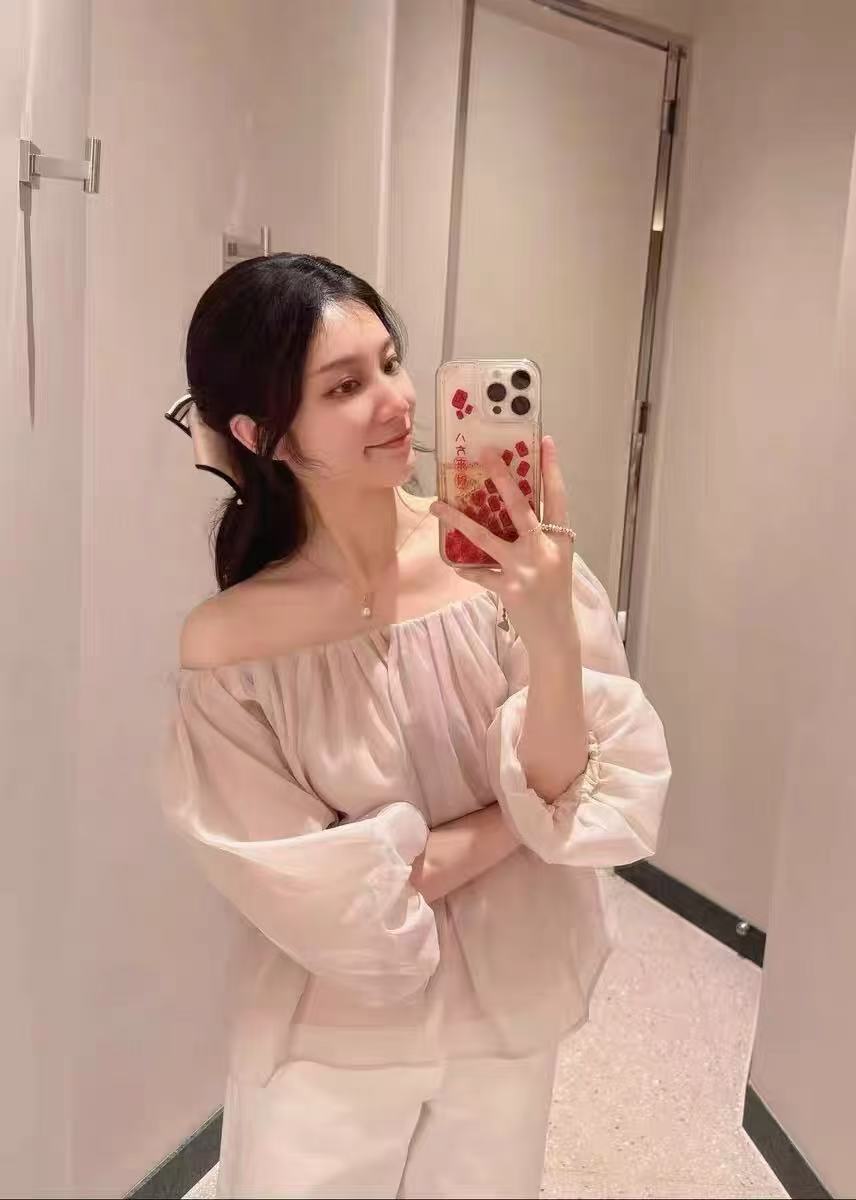 [이백] 일본 신상 달콤하고 우아한 원라인 칼라 오프숄더 퍼프슬리브 쉬폰 셔츠 25149스토어 가기