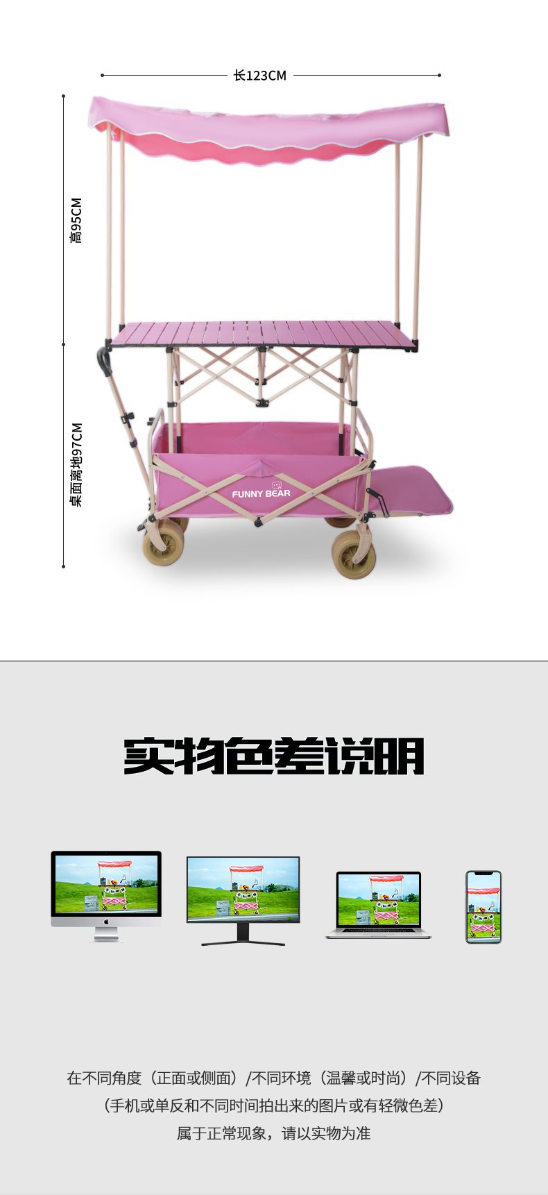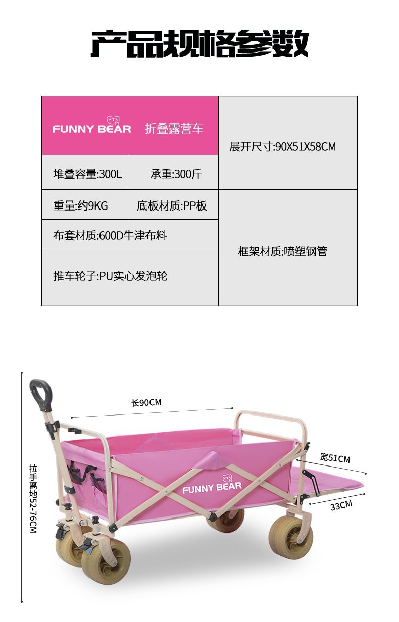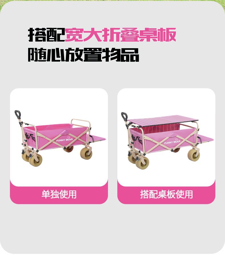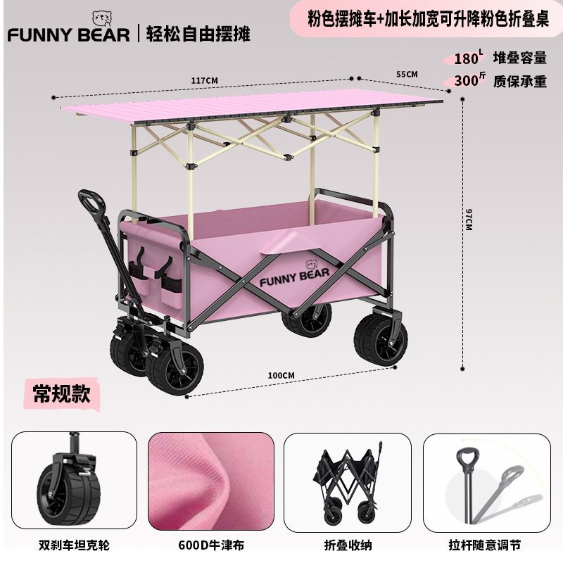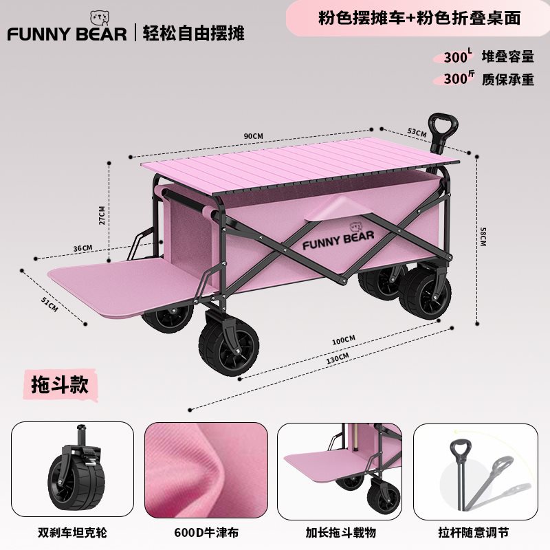 • 사쿠라 핑크 [90cm 데스크탑 - 캠핑용] + 탱크 휠 10inch개/더블 브레이크 포함(트레일러 버킷 모델)