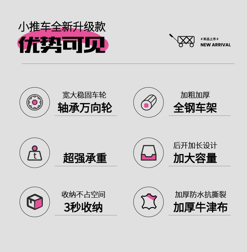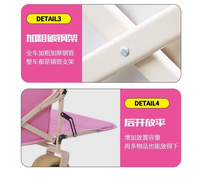 • 120cm [차양] 사쿠라 핑크(스톨 전용) 드래그 버킷/더블 브레이크 범용 휠 포함
