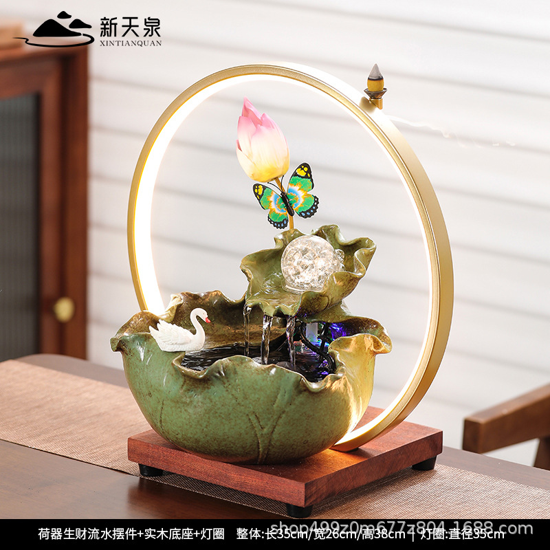 새로운 중국 스타일 조경 물고기 탱크 순환 물 거실 입구 사무실 장식 데스크탑 장식품 집들이 오프닝 선물