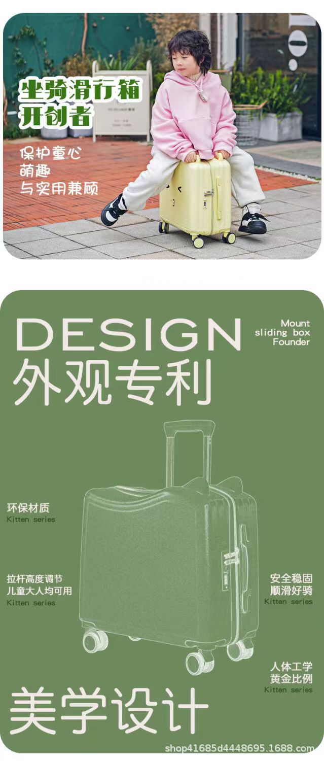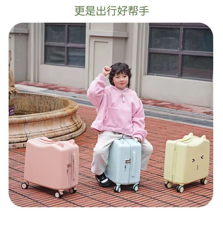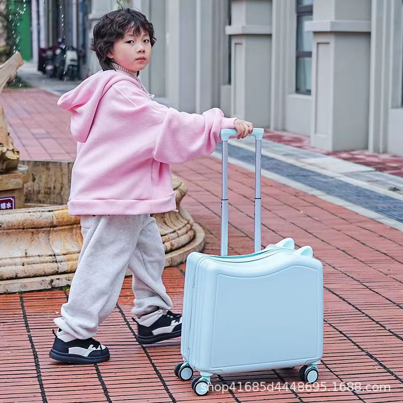 새로운 어린이 여행가방, 사이클링 여행가방, 소형 경량 탑승가방, 앉을 수 있는 트롤리 케이스, 소년용 비밀번호 상자