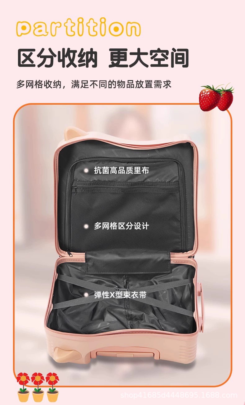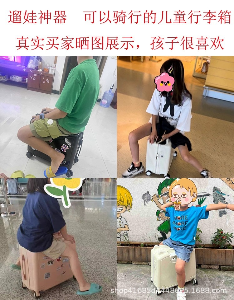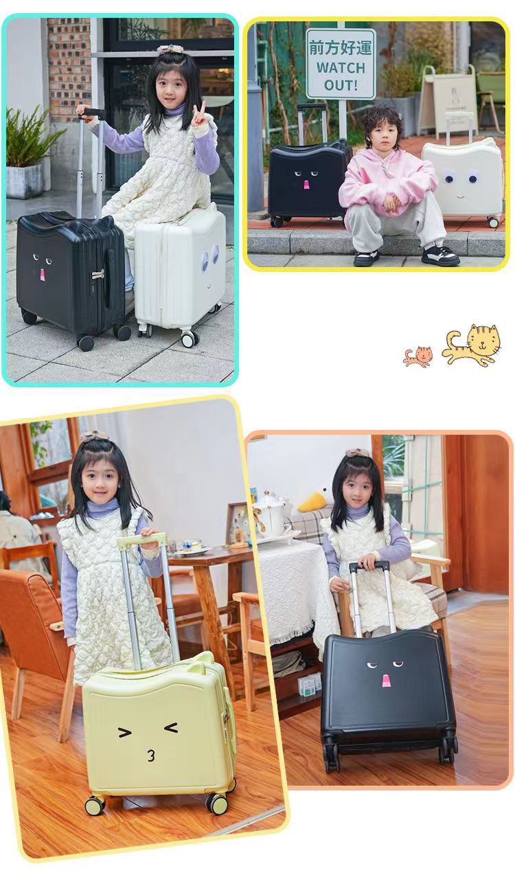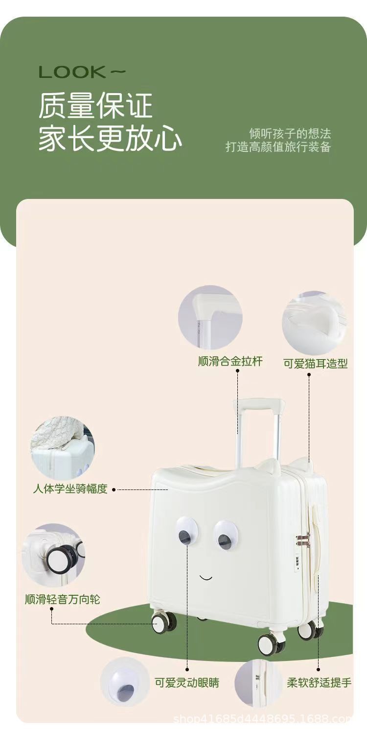 새로운 어린이 여행가방, 사이클링 여행가방, 소형 경량 탑승가방, 앉을 수 있는 트롤리 케이스, 소년용 비밀번호 상자스토어 가기