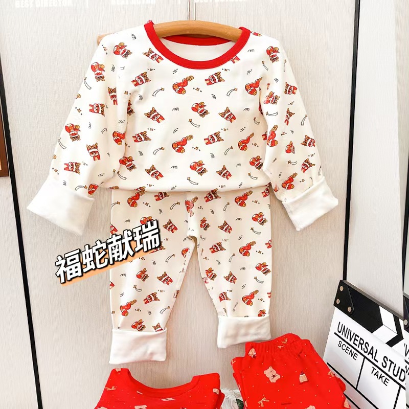 새해 순면 유형 A 어린이 속옷 세트 소년과 소녀 따뜻한 가을 옷과 긴 바지 아기 가정 옷 크리스마스 잠옷