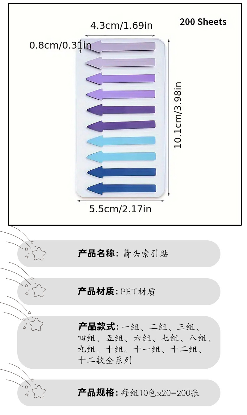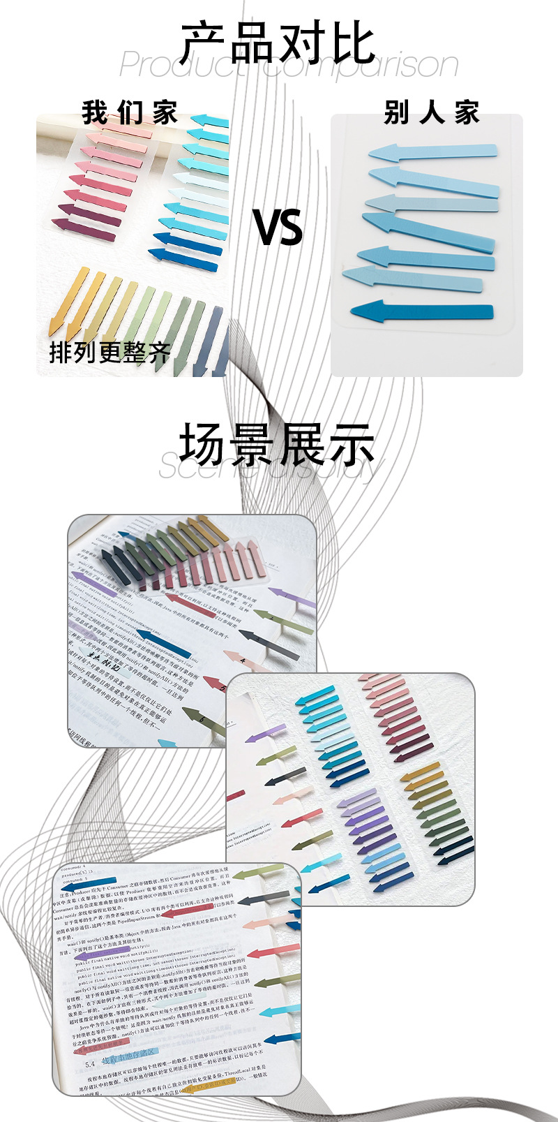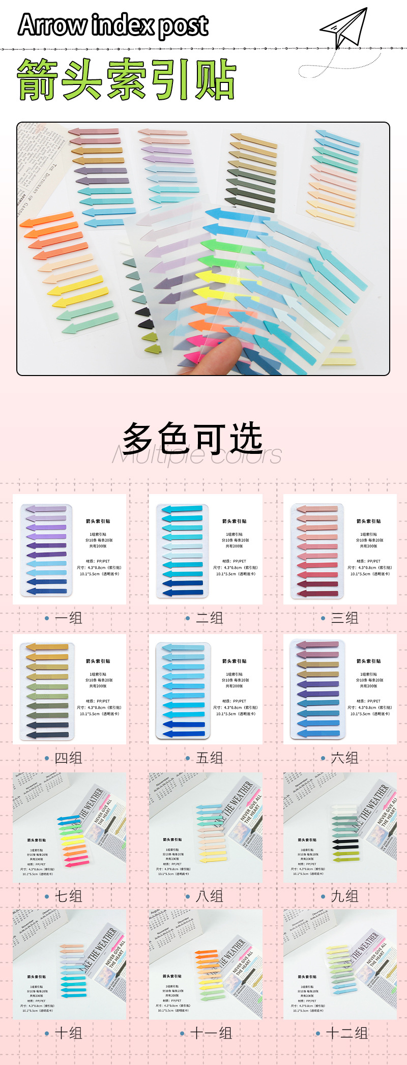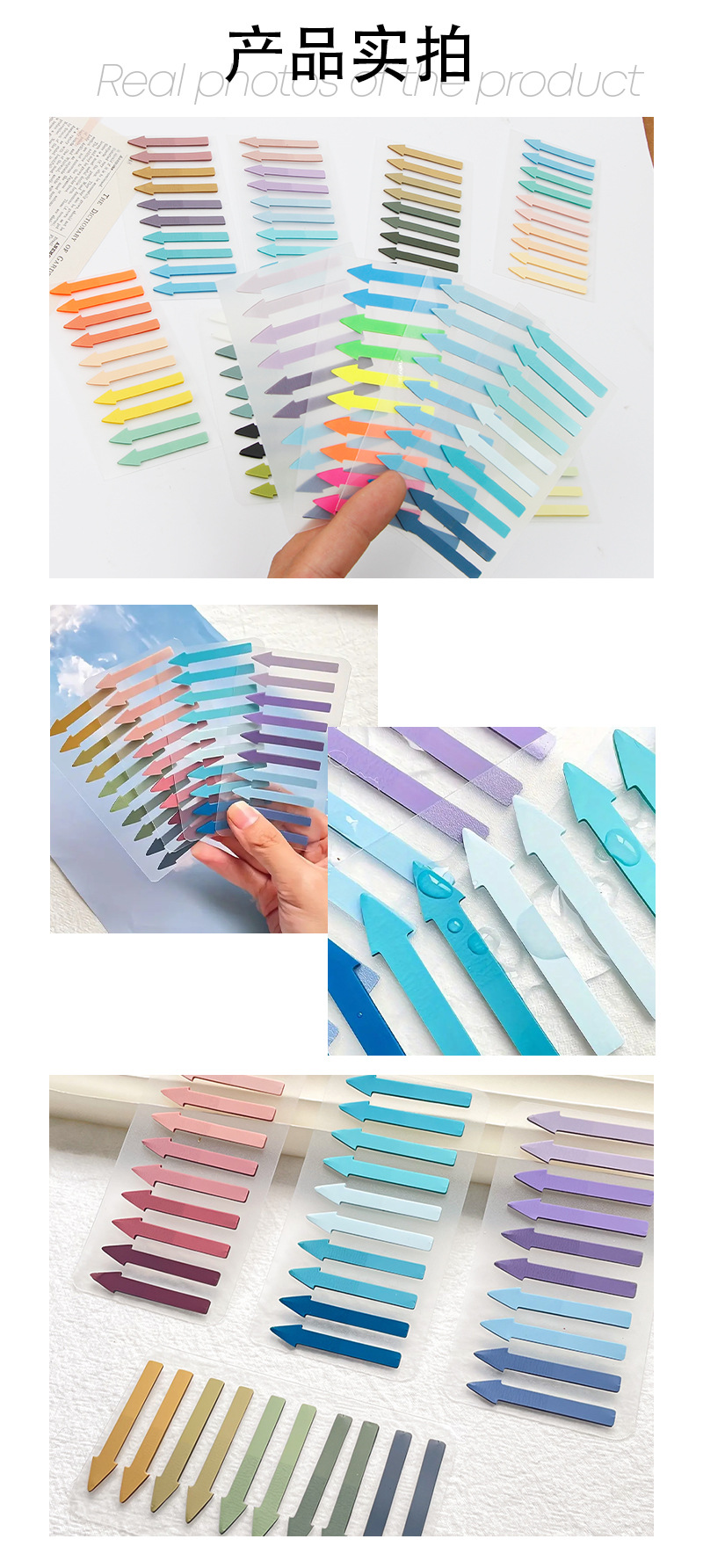 새로운 색상 화살표 색인 스티커 Morandi 투명 스티커 메모 독서 색인 스티커 학생 화살표 마킹 스티커