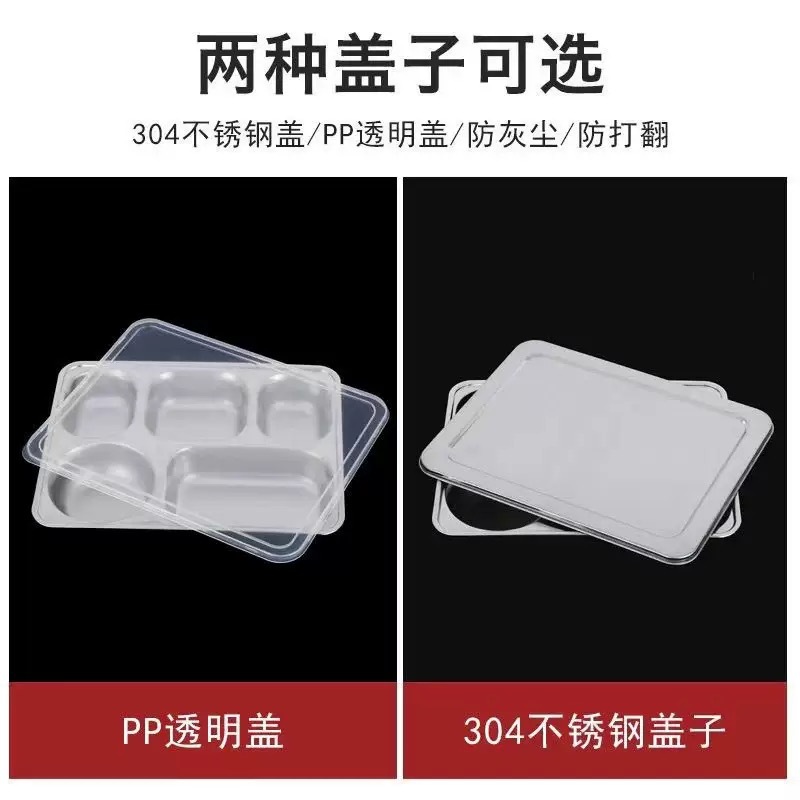 두꺼운 304 스테인리스 식판, 칸막이가 있는 학생 식당용 도시락, 뚜껑이 있는 깊은 도시락, 고급스러운 트레이