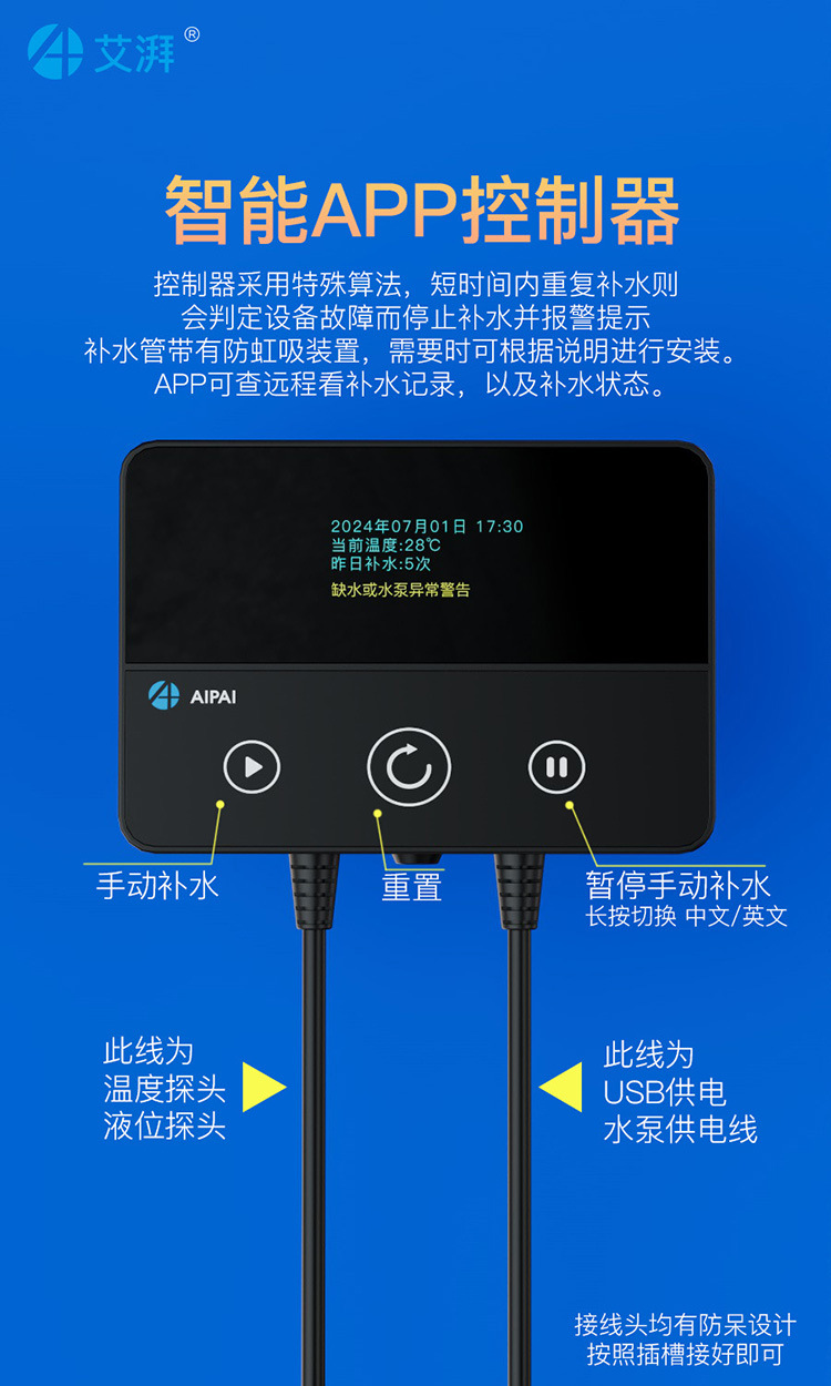 Aipai 스마트 워터 디스펜서 수분 공급 온도 측정 원격 물 공급 건조 방지 바닷물 수조 워터 디스펜서 APP 컨트롤러