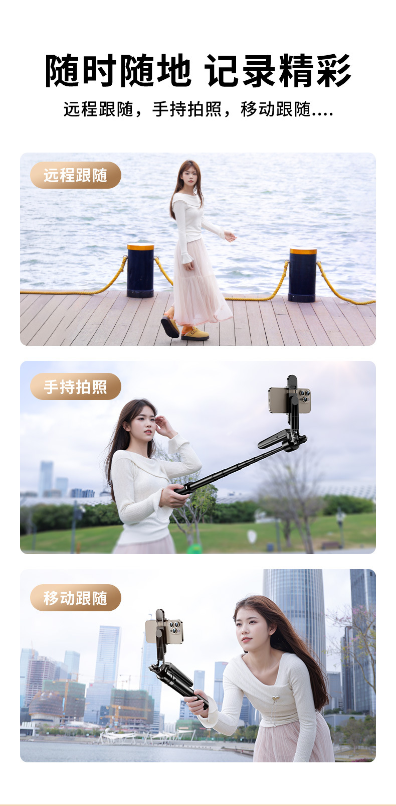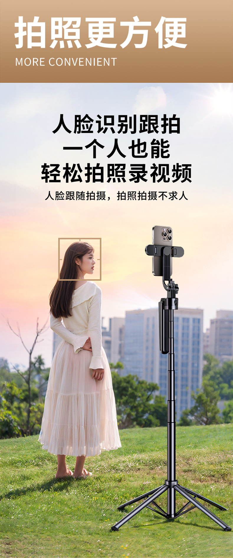 B181 짐벌 셀카봉 4각형 얼굴 추적 방진 자동 추적 블루투스 셀카봉 확장 가능