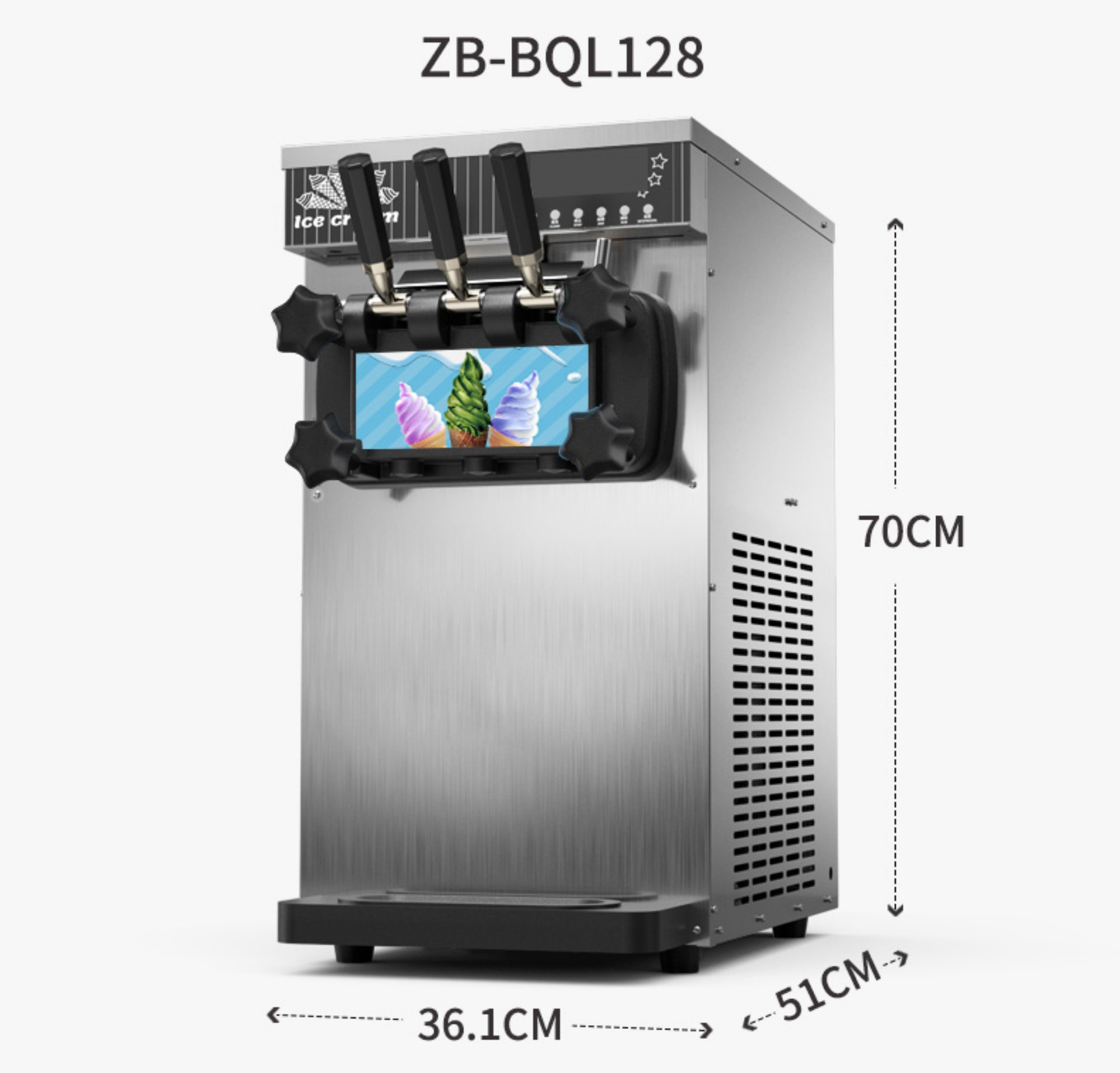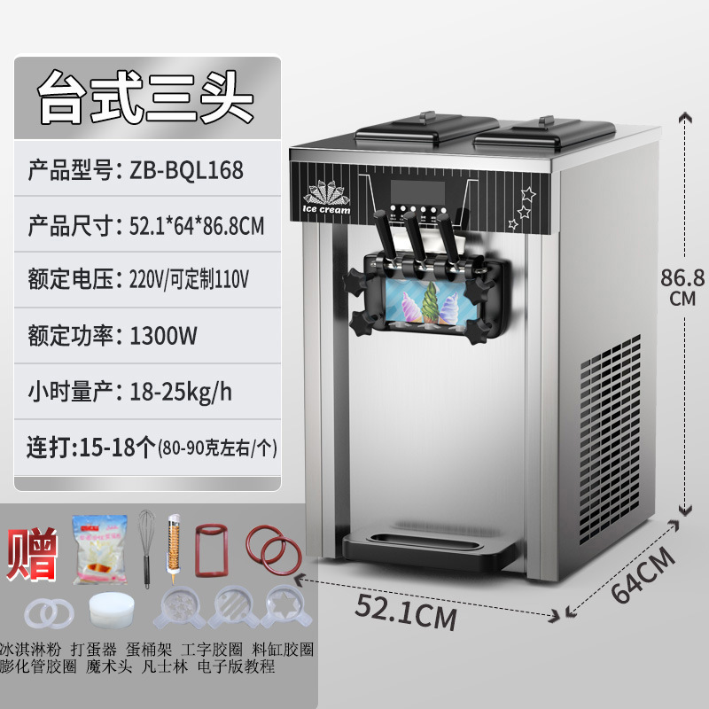 • 유형 128 스테인레스 스틸 데스크탑 3 헤드 아이스크림 기계
