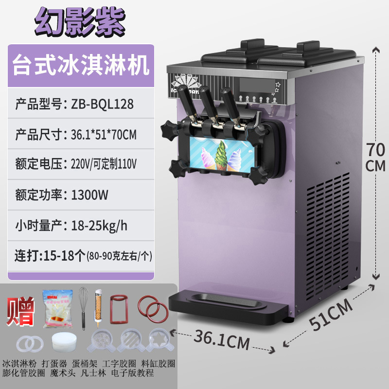 • 모델 128 팬텀 퍼플 데스크탑 3헤드 아이스크림 기계