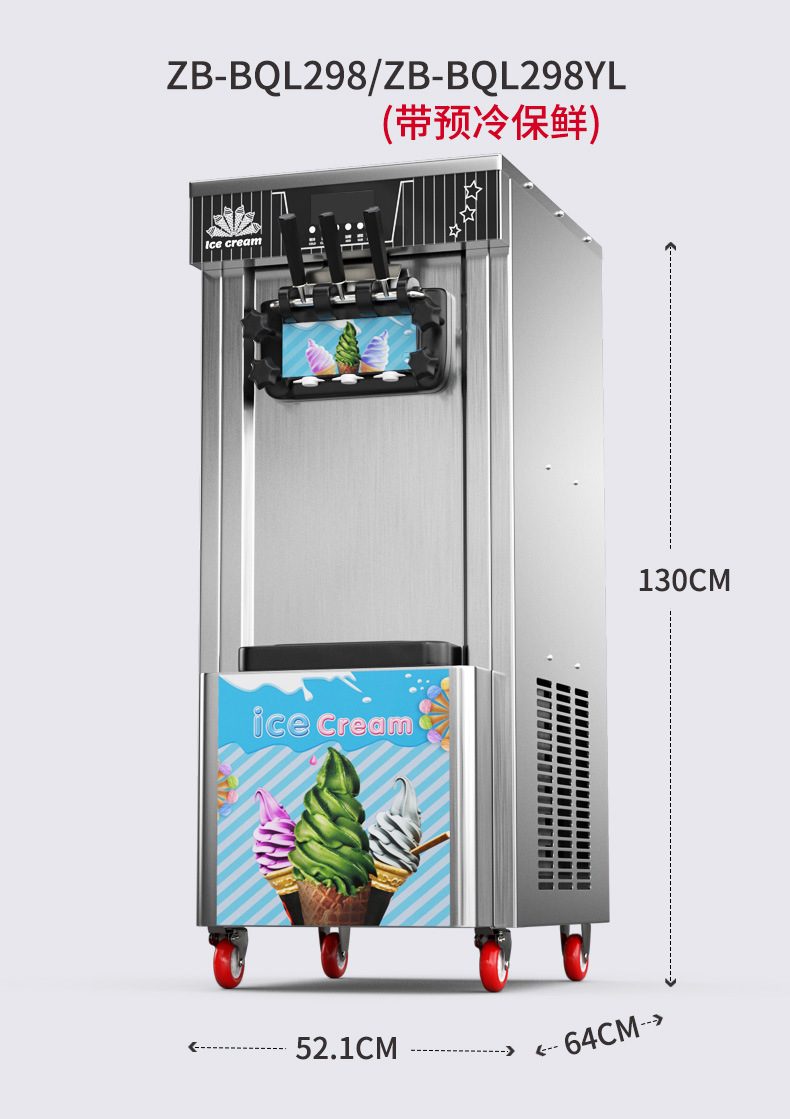 • 298형 수직형 대형 3헤드 사전 냉각 및 신선도 유지 아이스크림 기계