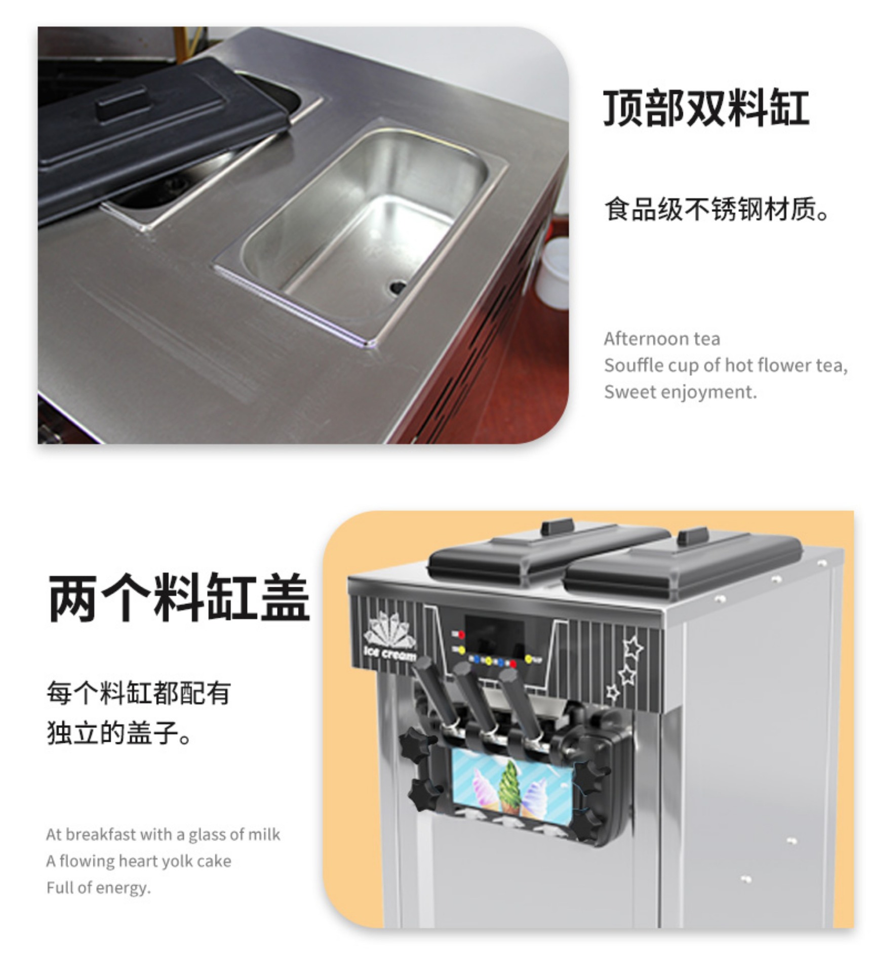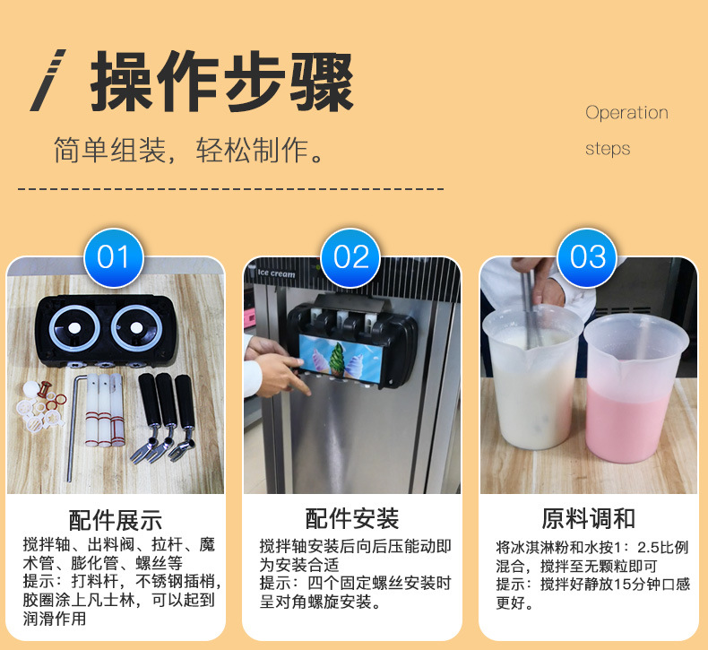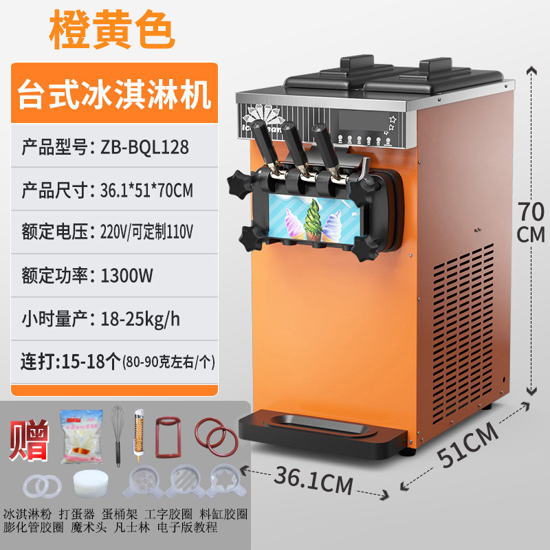 • 모델 128 주황색 노란색 데스크탑 3 헤드 아이스크림 기계