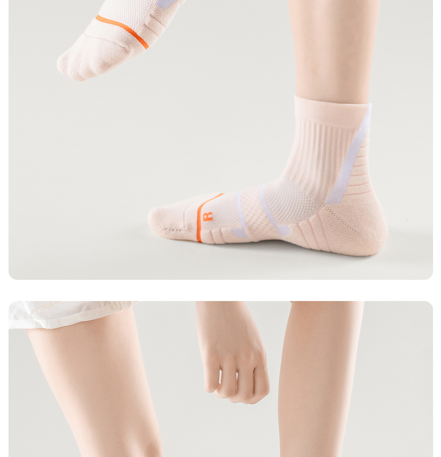 여성용 배드민턴 양말, 여름 종아리 중간 전문 달리기 스포츠 양말, 등산 및 하이킹 두꺼운 미끄럼 방지 수건 바닥 양말