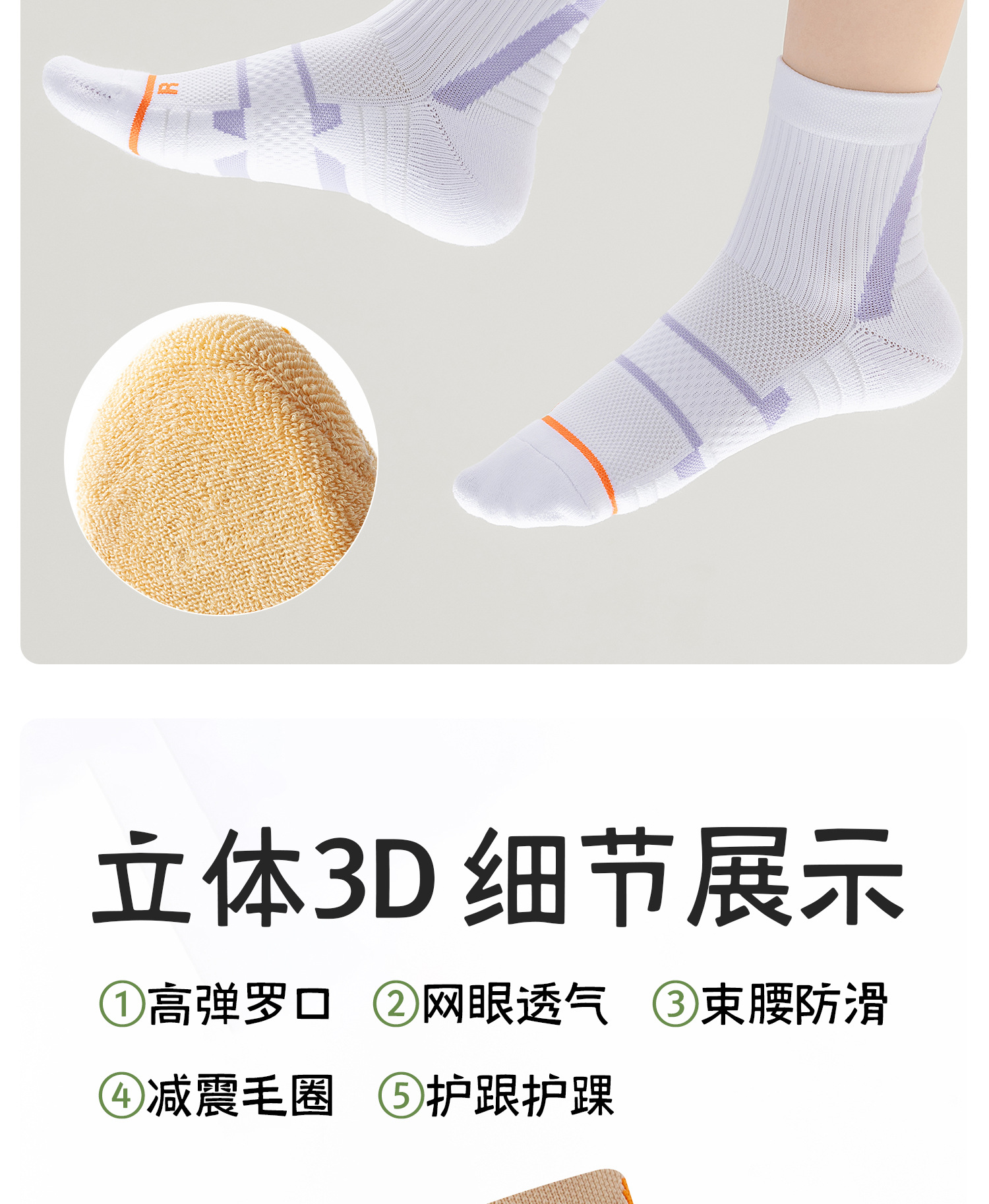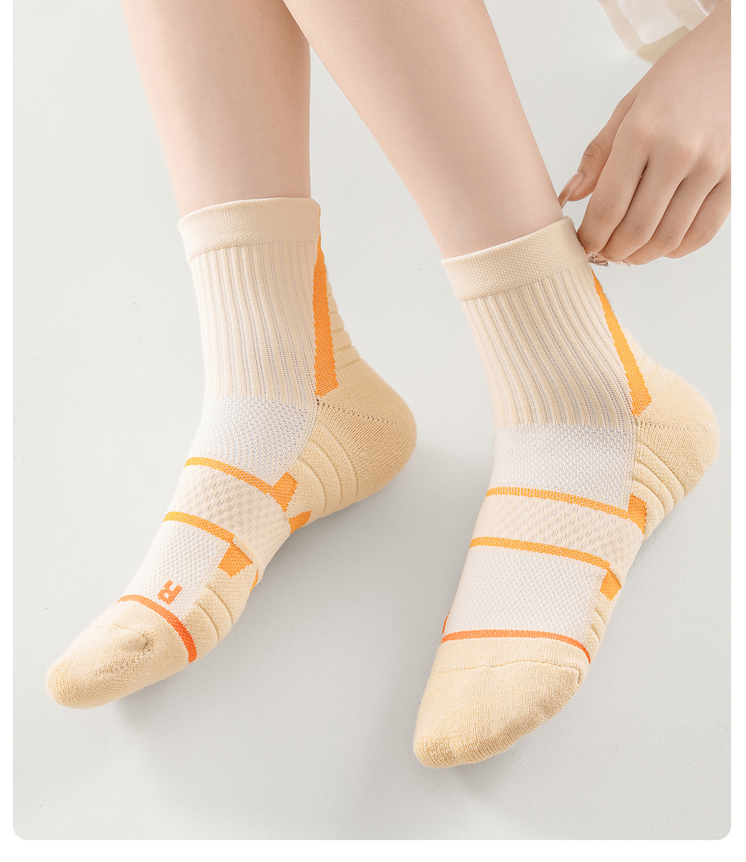 여성용 배드민턴 양말, 여름 종아리 중간 전문 달리기 스포츠 양말, 등산 및 하이킹 두꺼운 미끄럼 방지 수건 바닥 양말스토어 가기