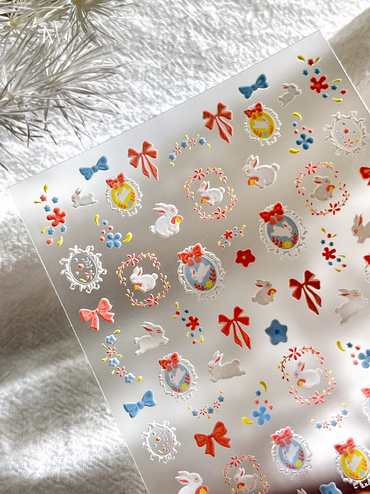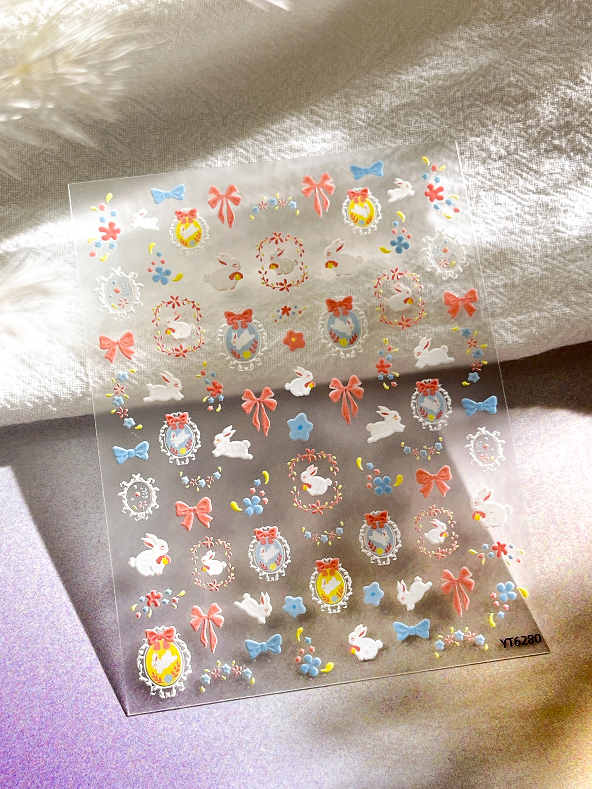 YITU 엘리베이티드 보우 네일 아트 스티커 달콤한 스타일 소녀 귀여운 토끼 장식 스티커 YT6280