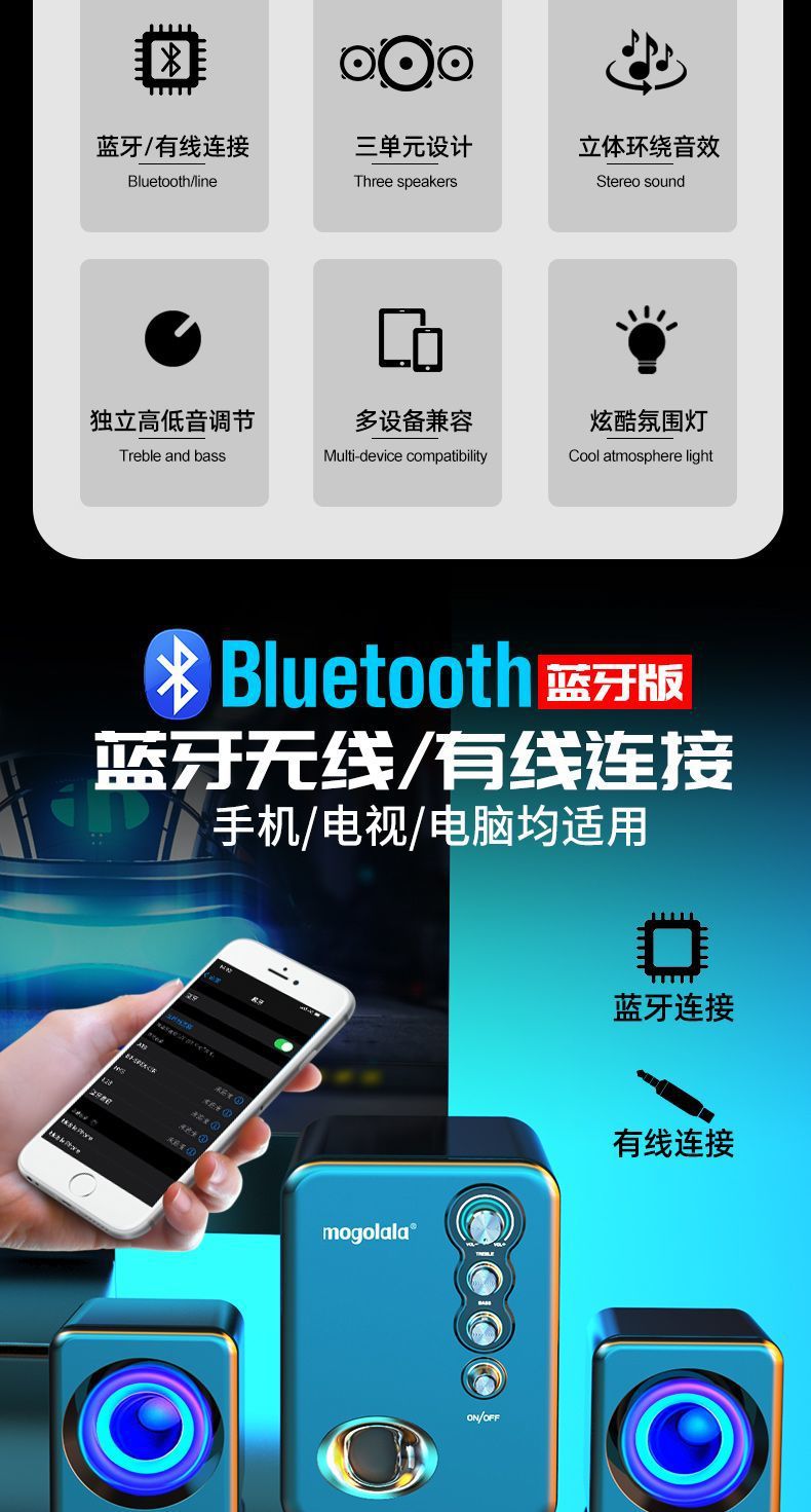 • 블루투스 버전: 중저음 효과 + 블루투스 유선 이중 사용