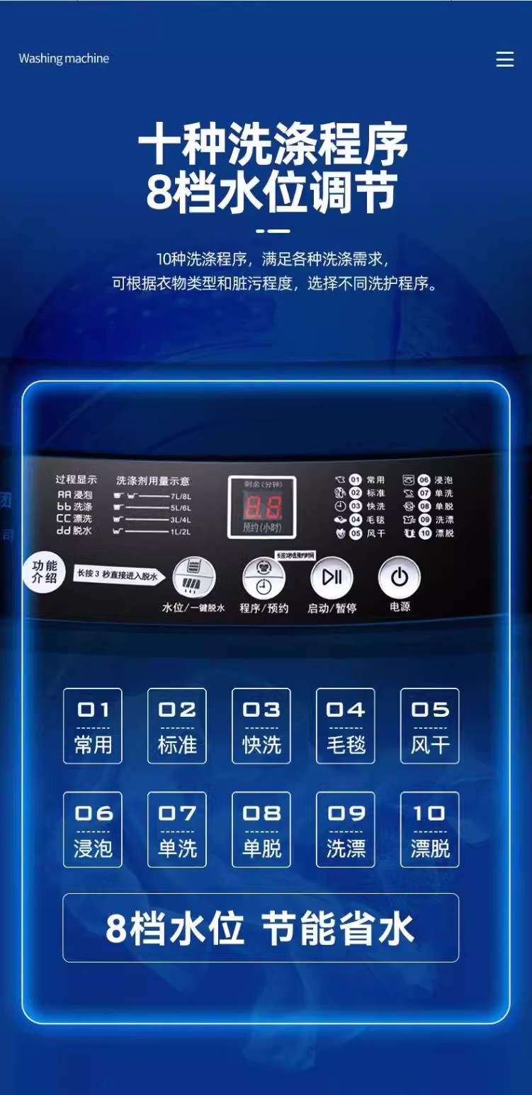 • 10KG 강력한 공기 건조/블루 라이트 세척/강력한 오염 제거/엉킴 방지