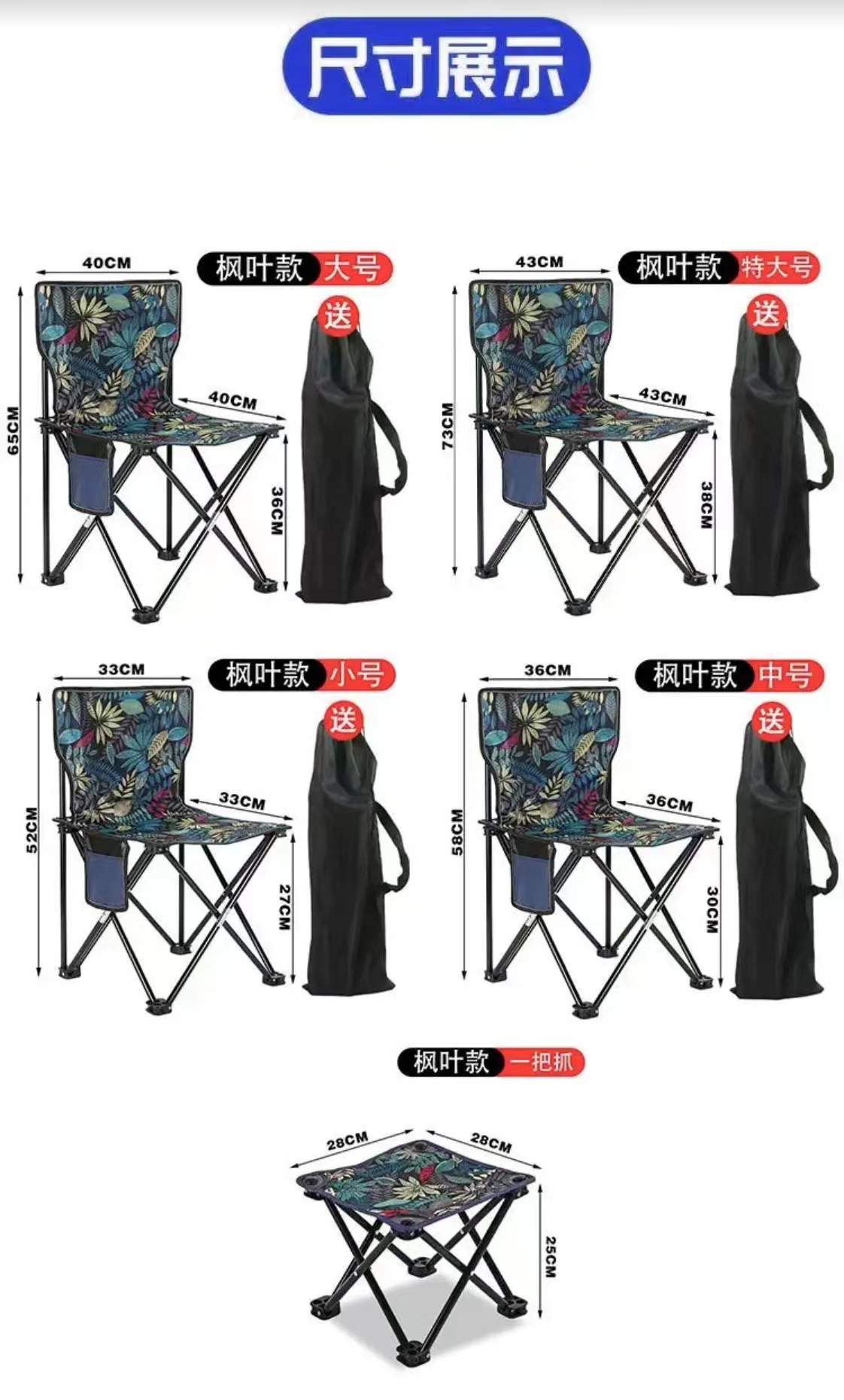 • 33CM 리프 블루 접이식 의자