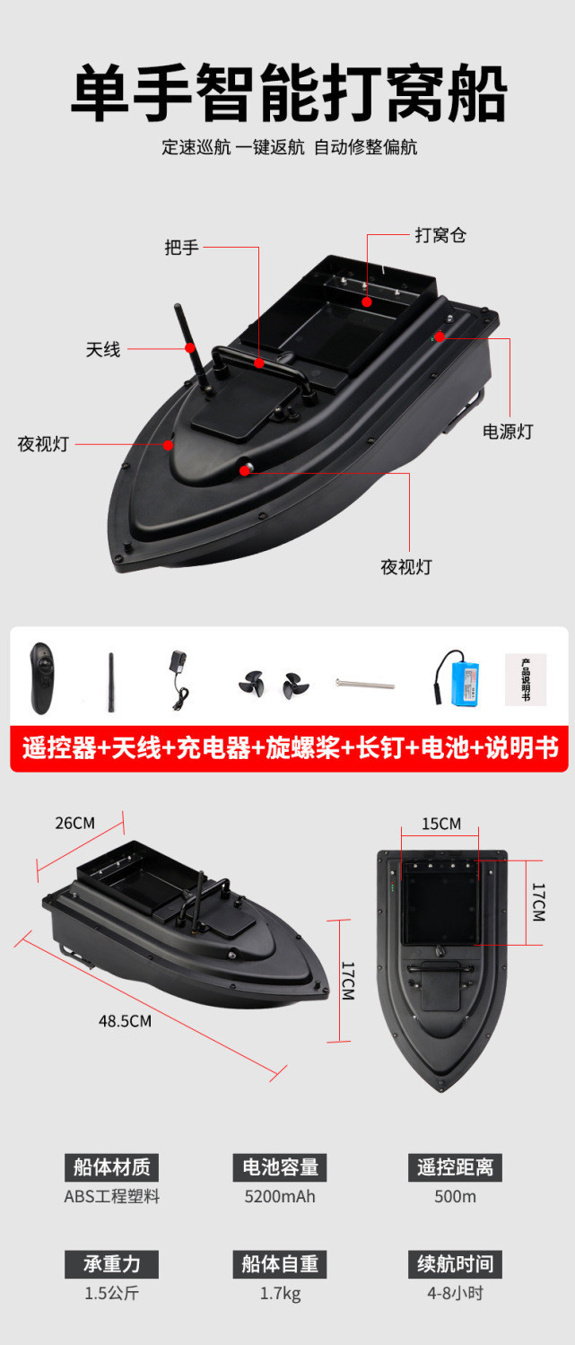 • 수입 5200mAh 배터리 + 견인 후크 프로펠러 - 업그레이드된 단일 창고 둥지 만들기 보트