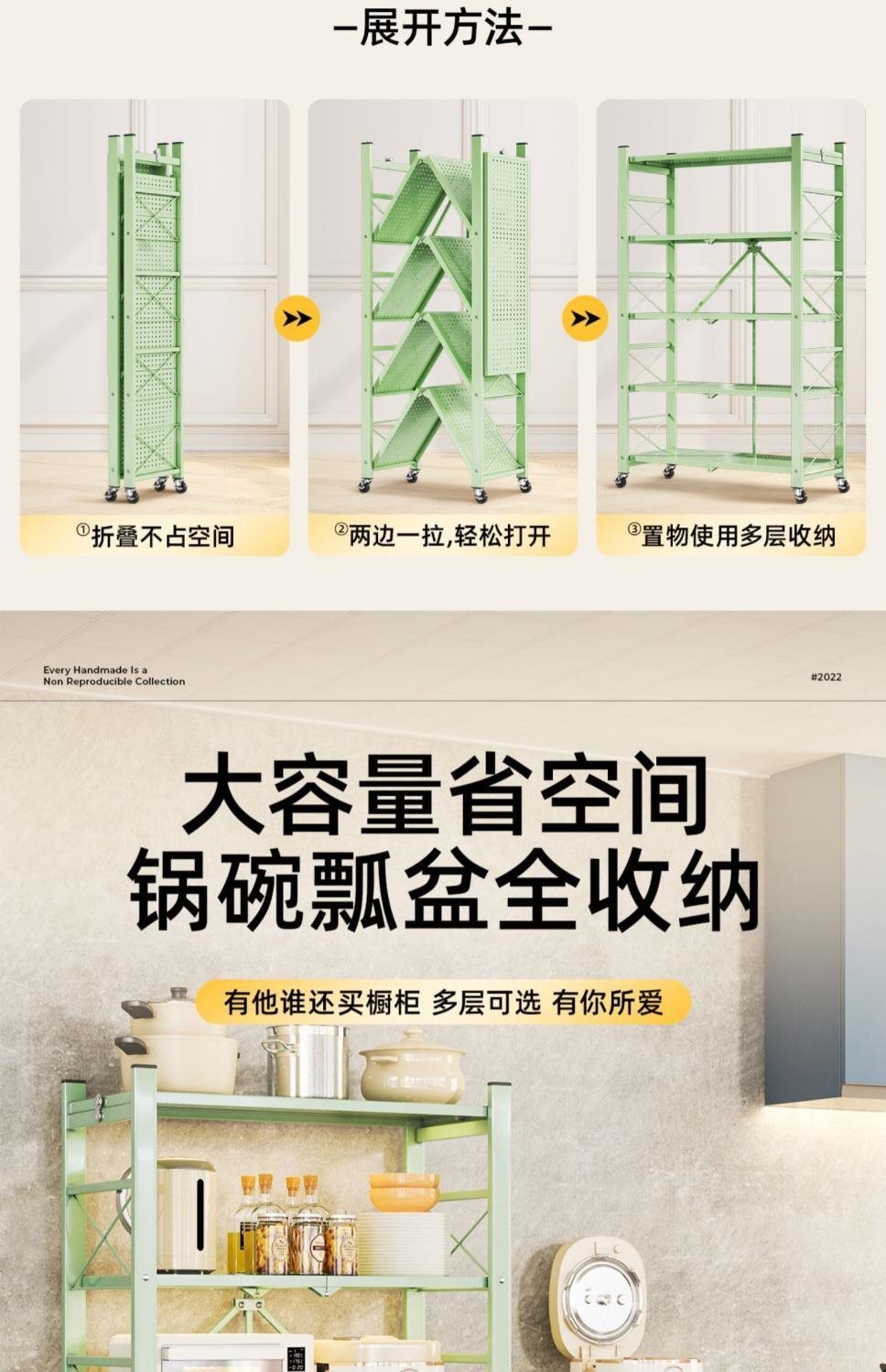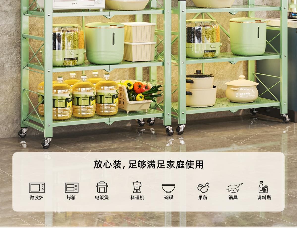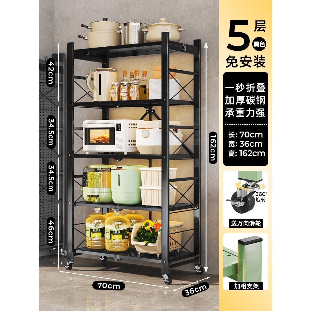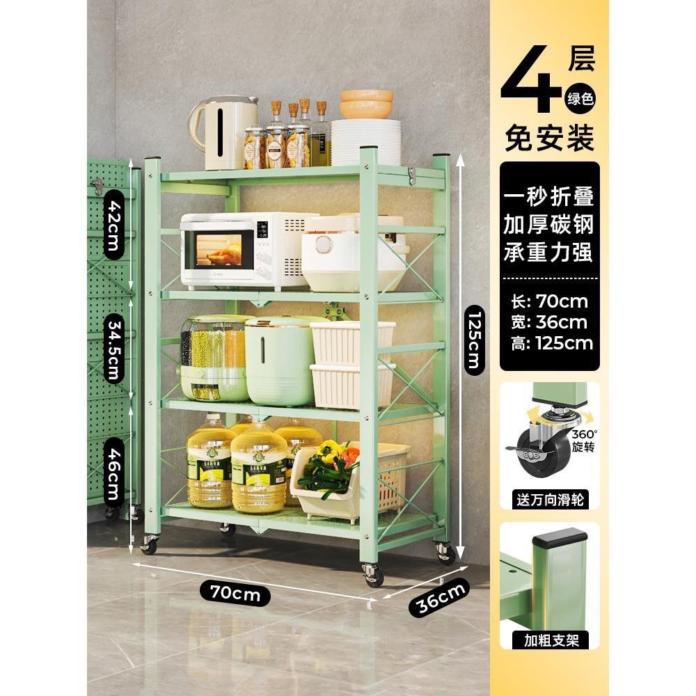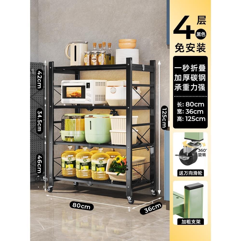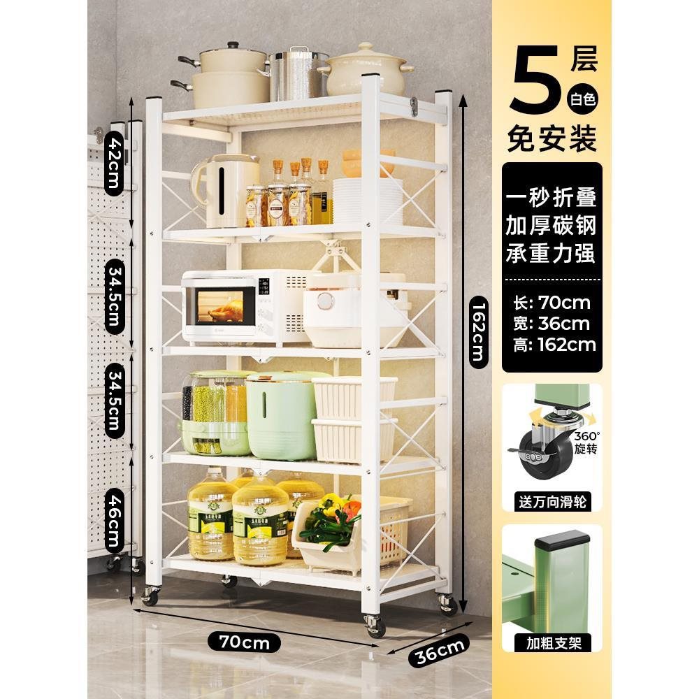 주방 접이식 선반 바닥에서 천장까지 다층 선반 설치가 필요 없는 보관 캐비닛 선반 전자 레인지 선반스토어 가기